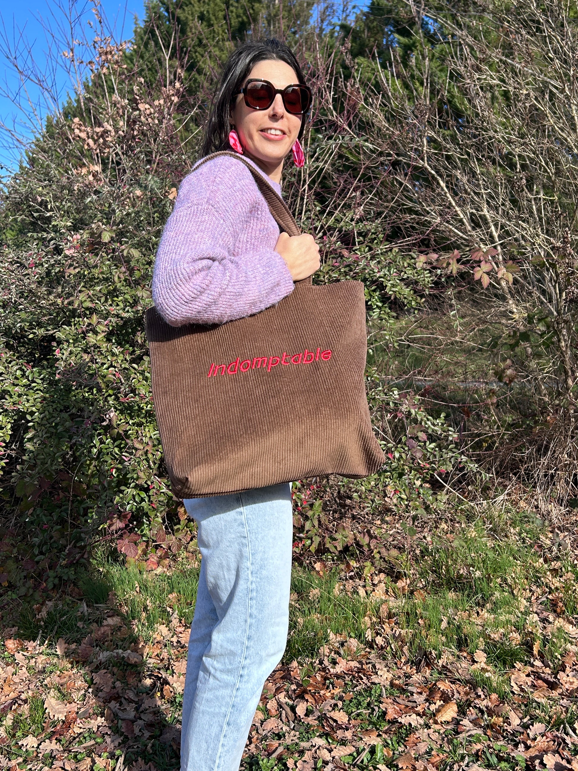 Cabas La Culottée – Brodée “Indomptable” - Velours / La Féline