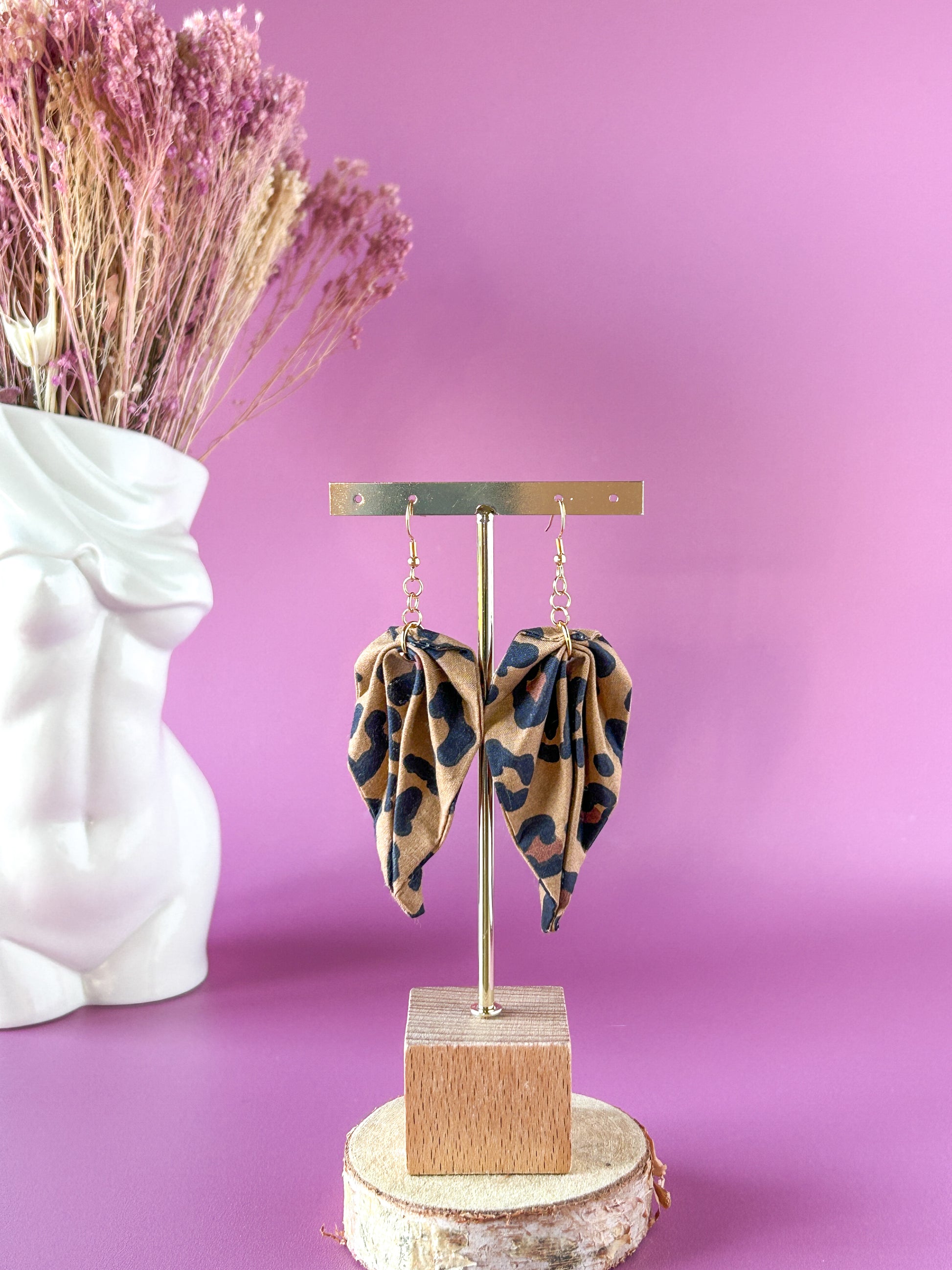Matières : Boucles d'oreilles en tissu et acier inoxydable, très légères et agréables à porter.