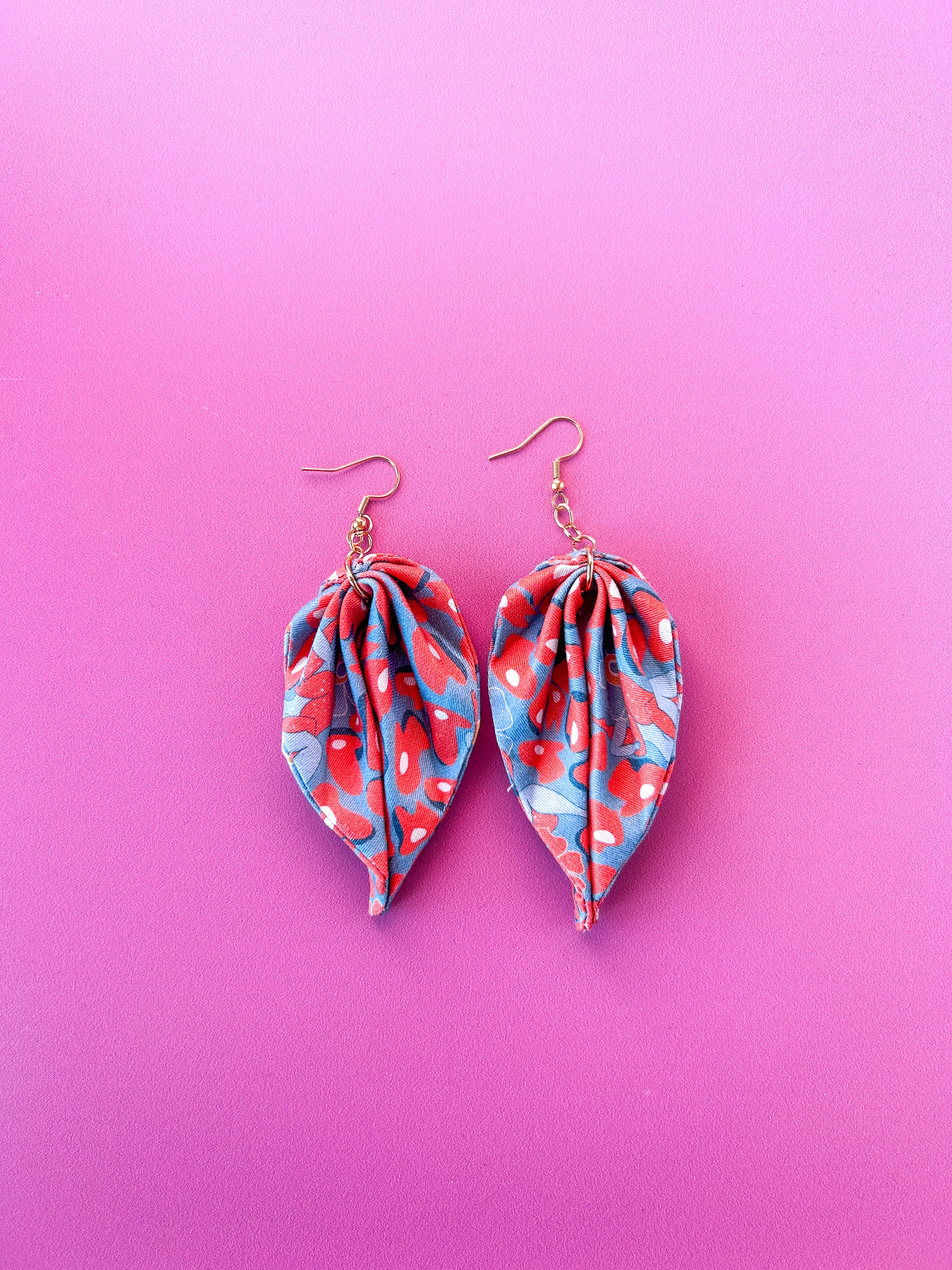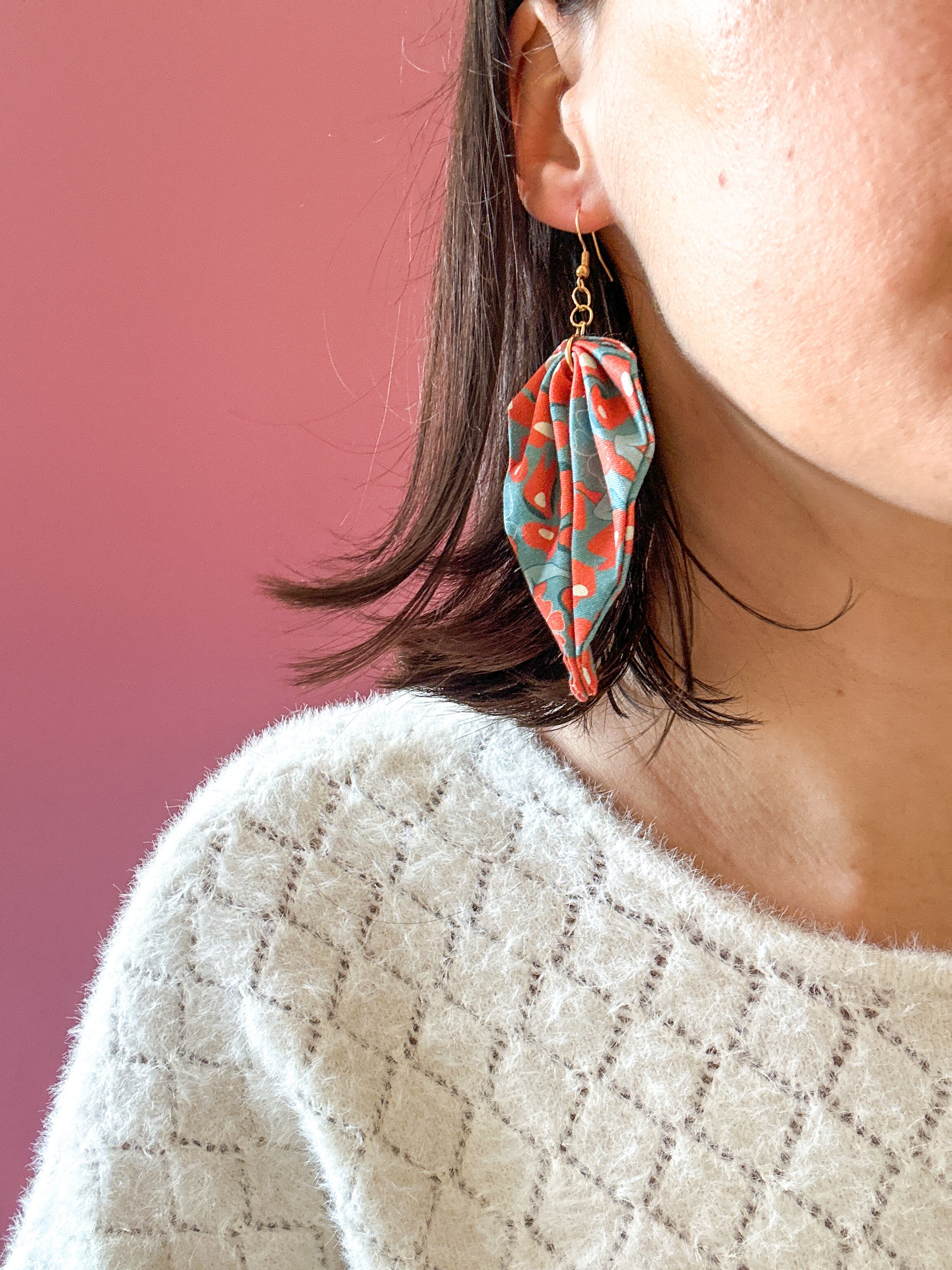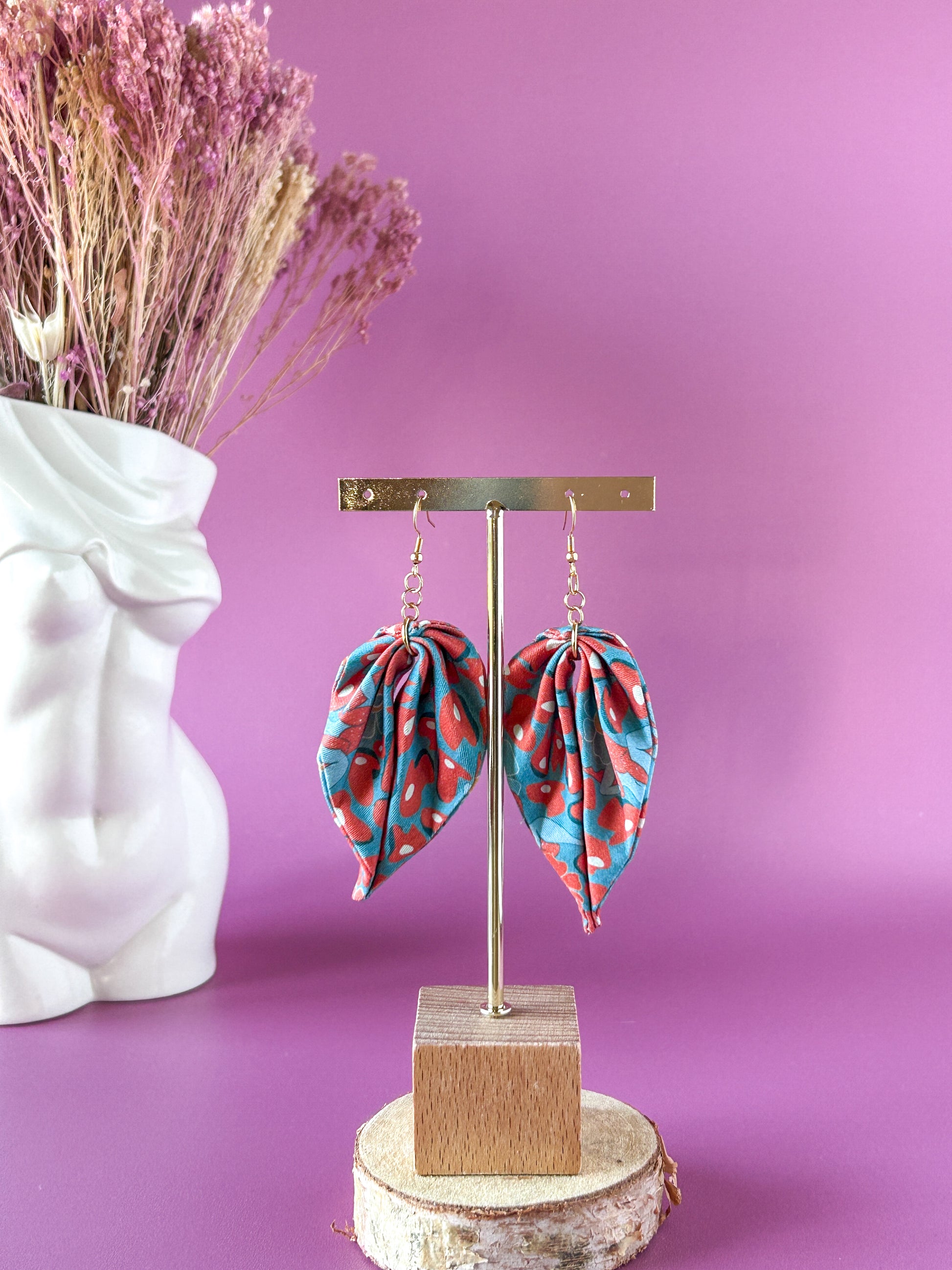Matières : Boucles d'oreilles en tissu et acier inoxydable, très légères et agréables à porter.