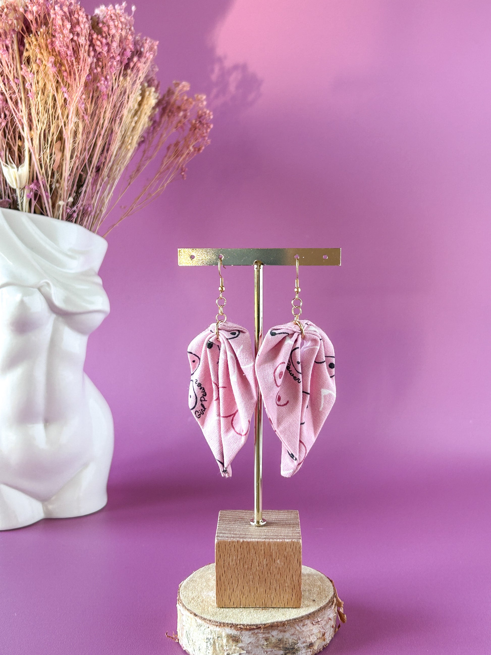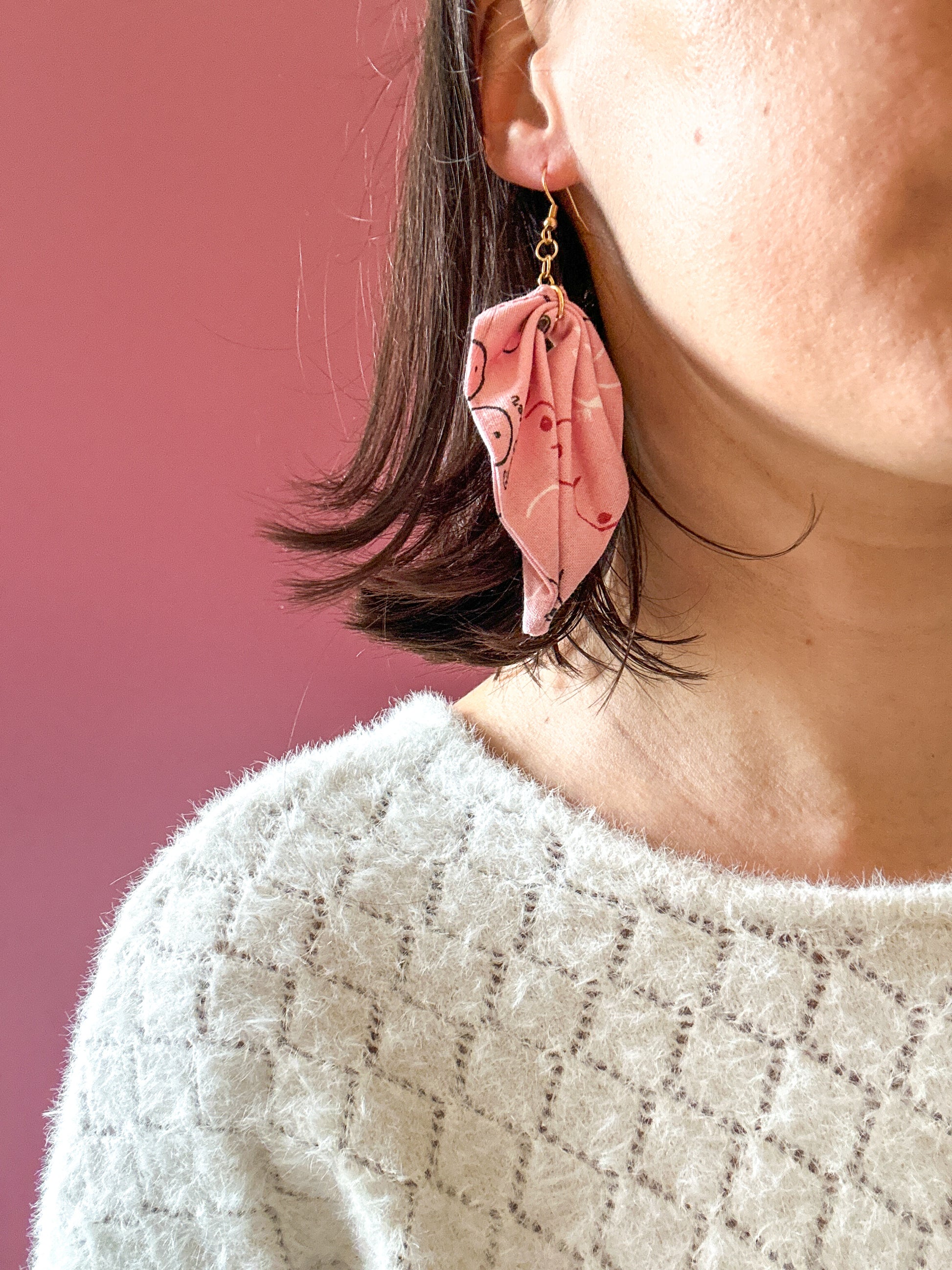 Matières : Boucles d'oreilles en tissu et acier inoxydable, très légères et agréables à porter.