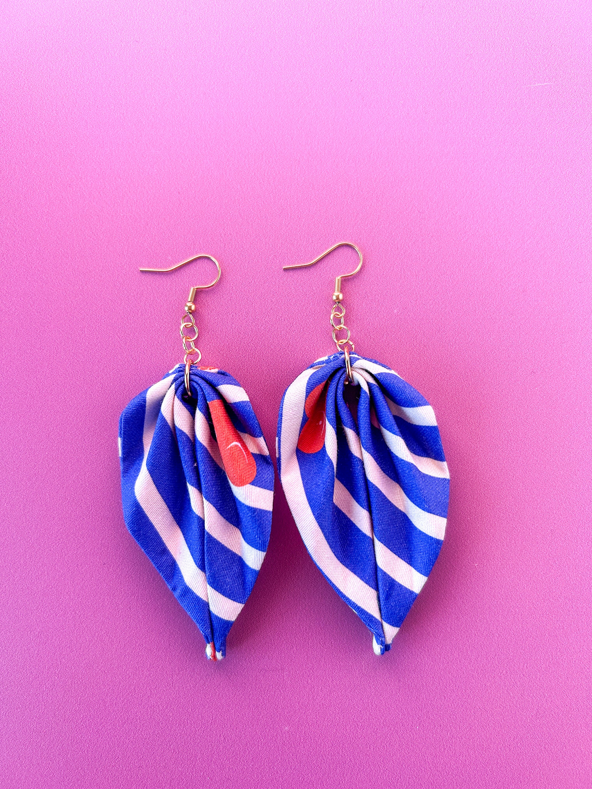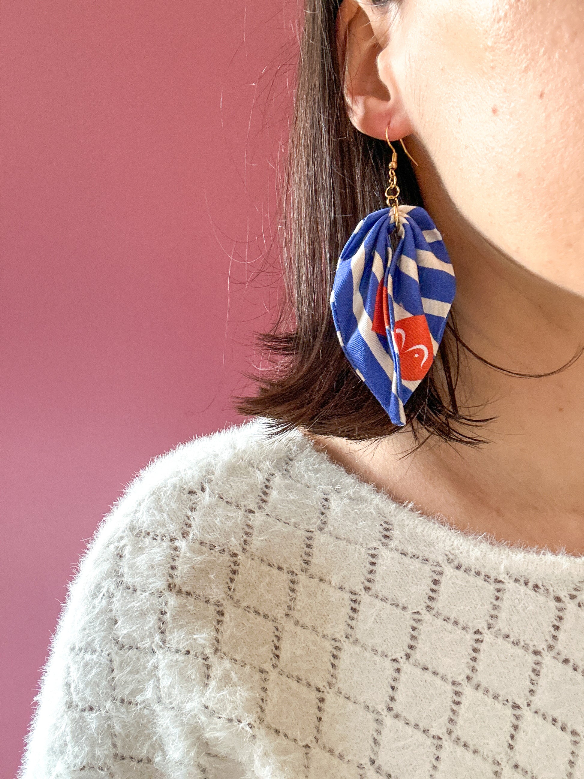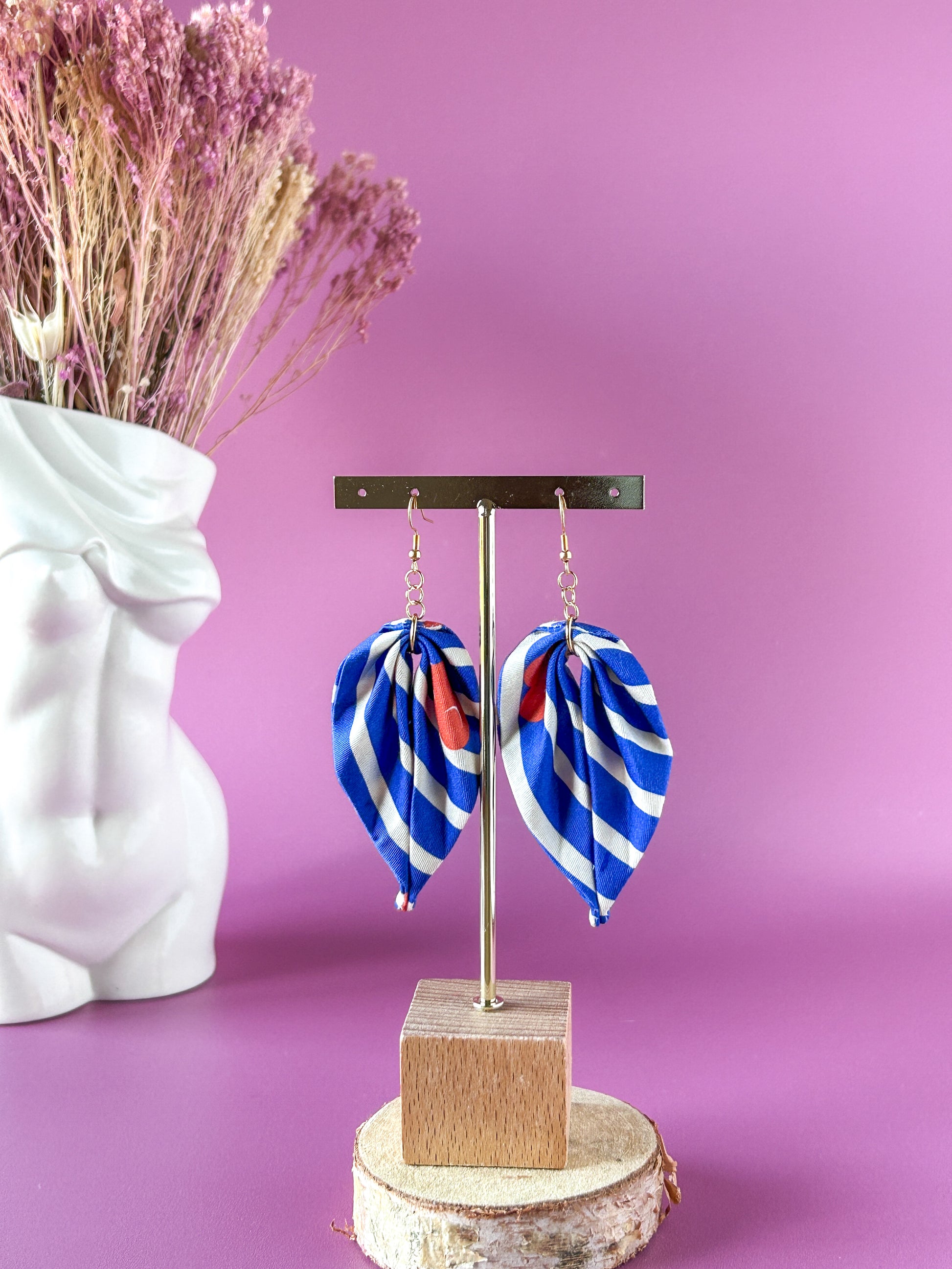 Matières : Boucles d'oreilles en tissu et acier inoxydable, très légères et agréables à porter.