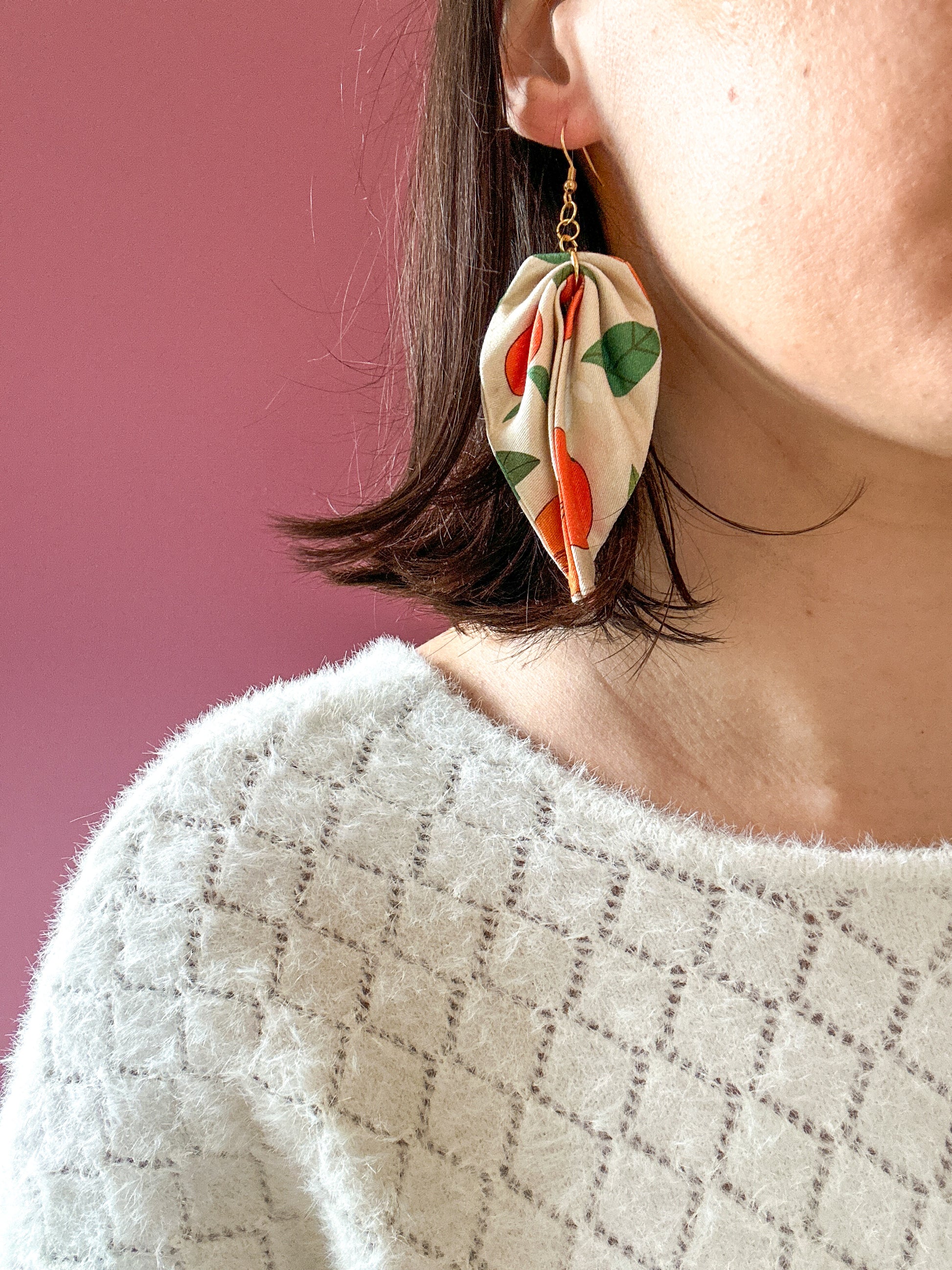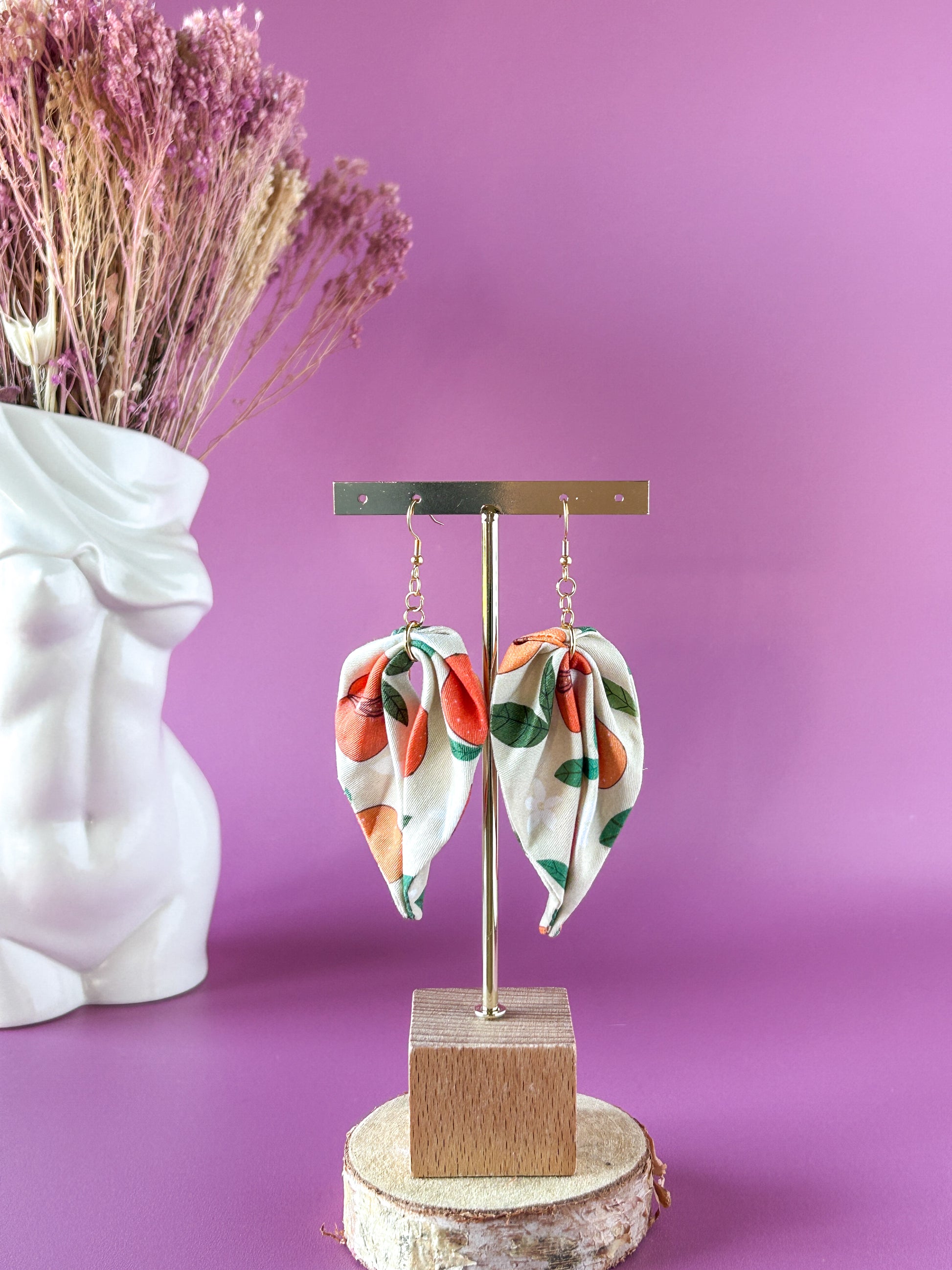 Matières : Boucles d'oreilles en tissu et acier inoxydable, très légères et agréables à porter.