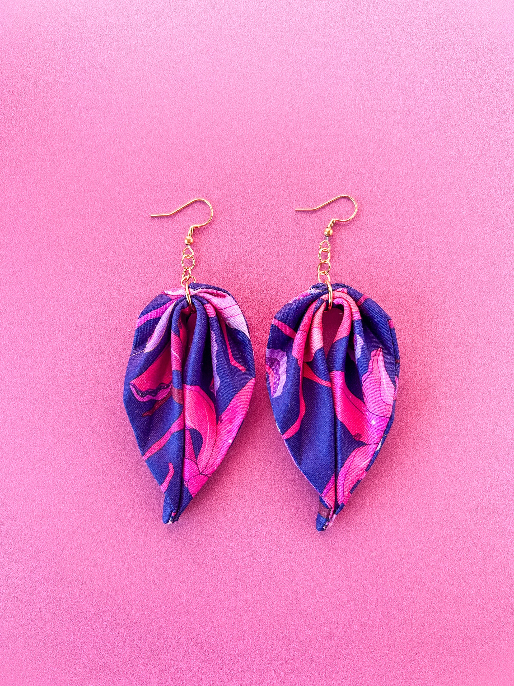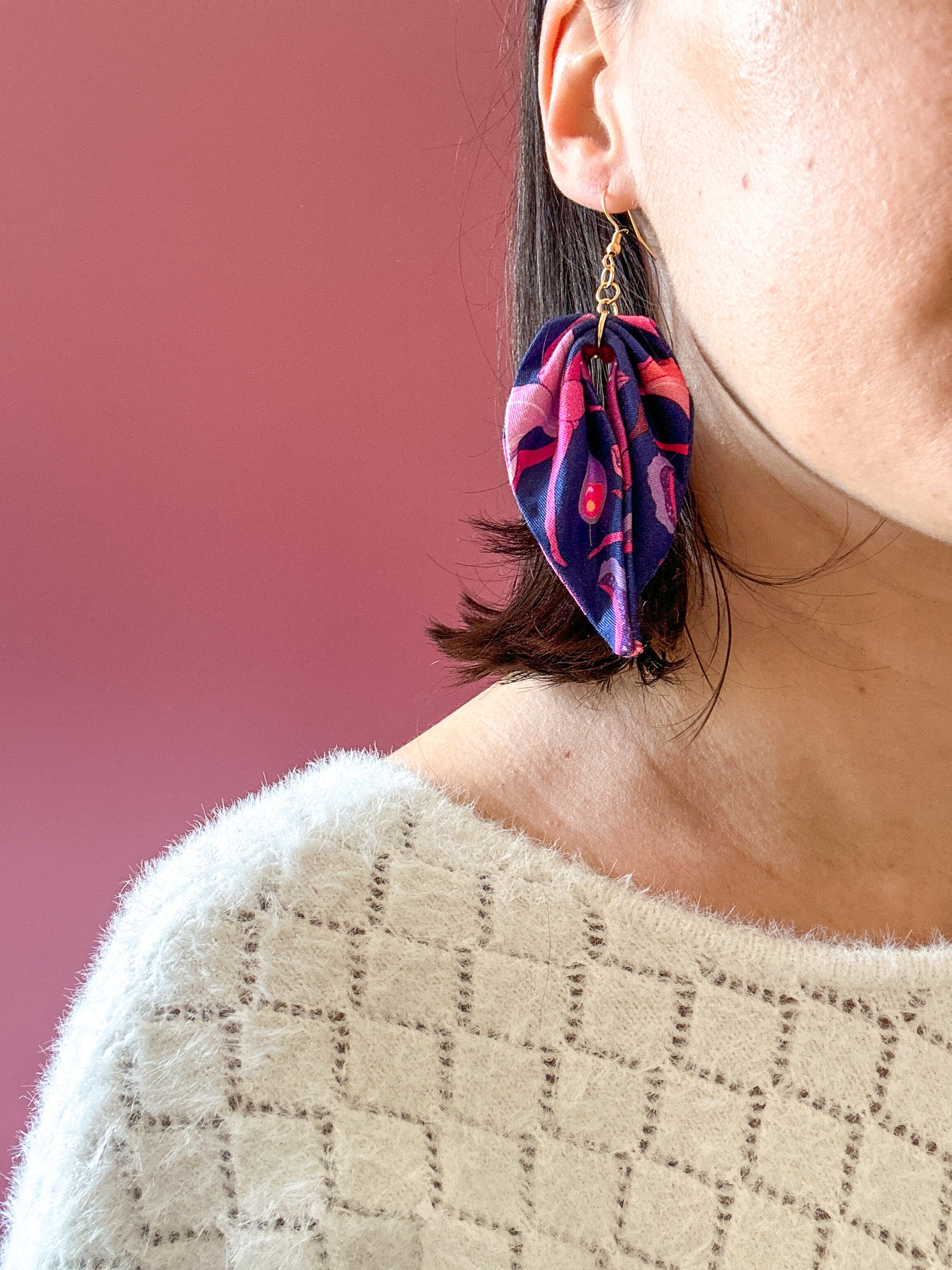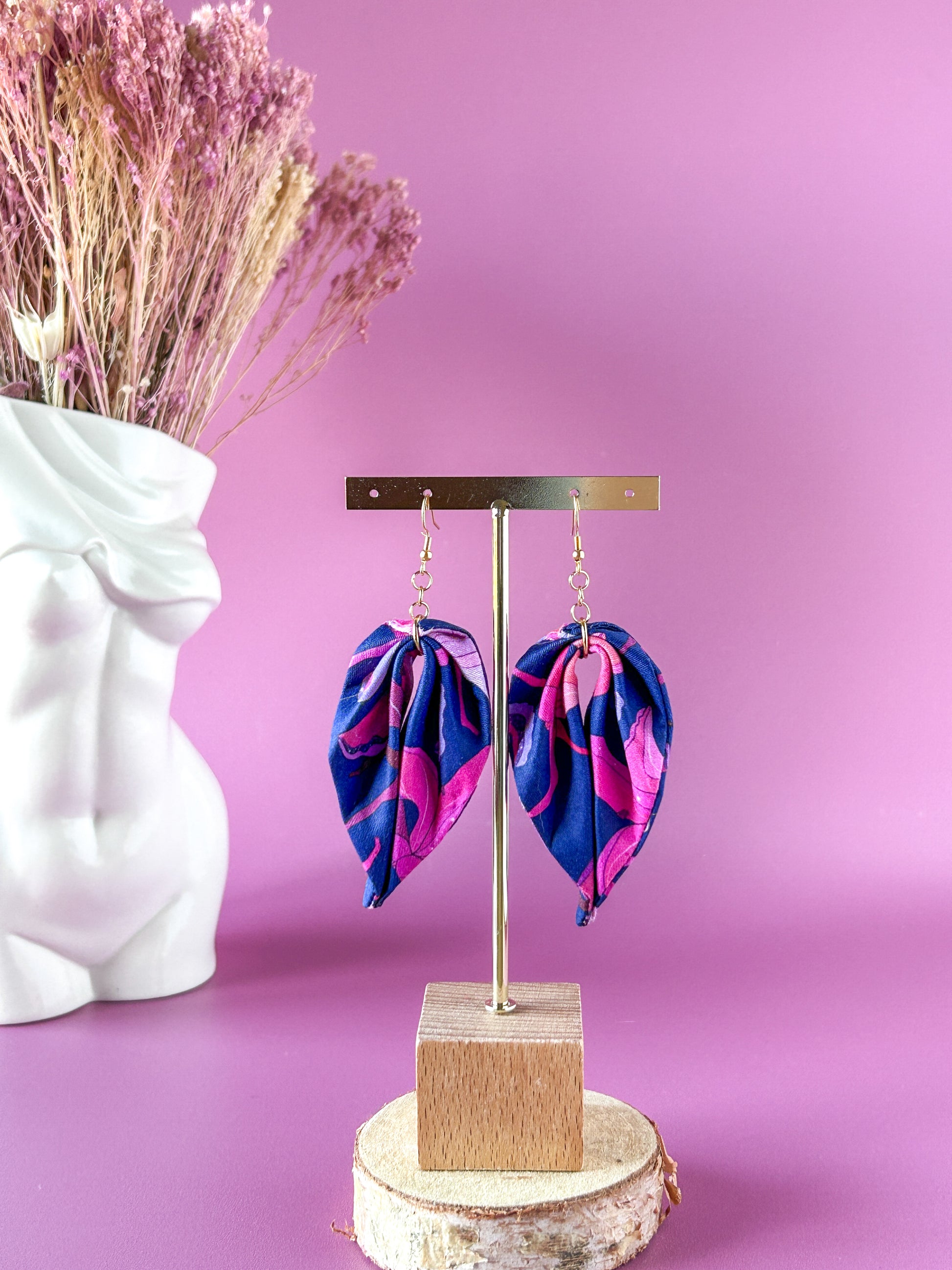 Matières : Boucles d'oreilles en tissu et acier inoxydable, très légères et agréables à porter.