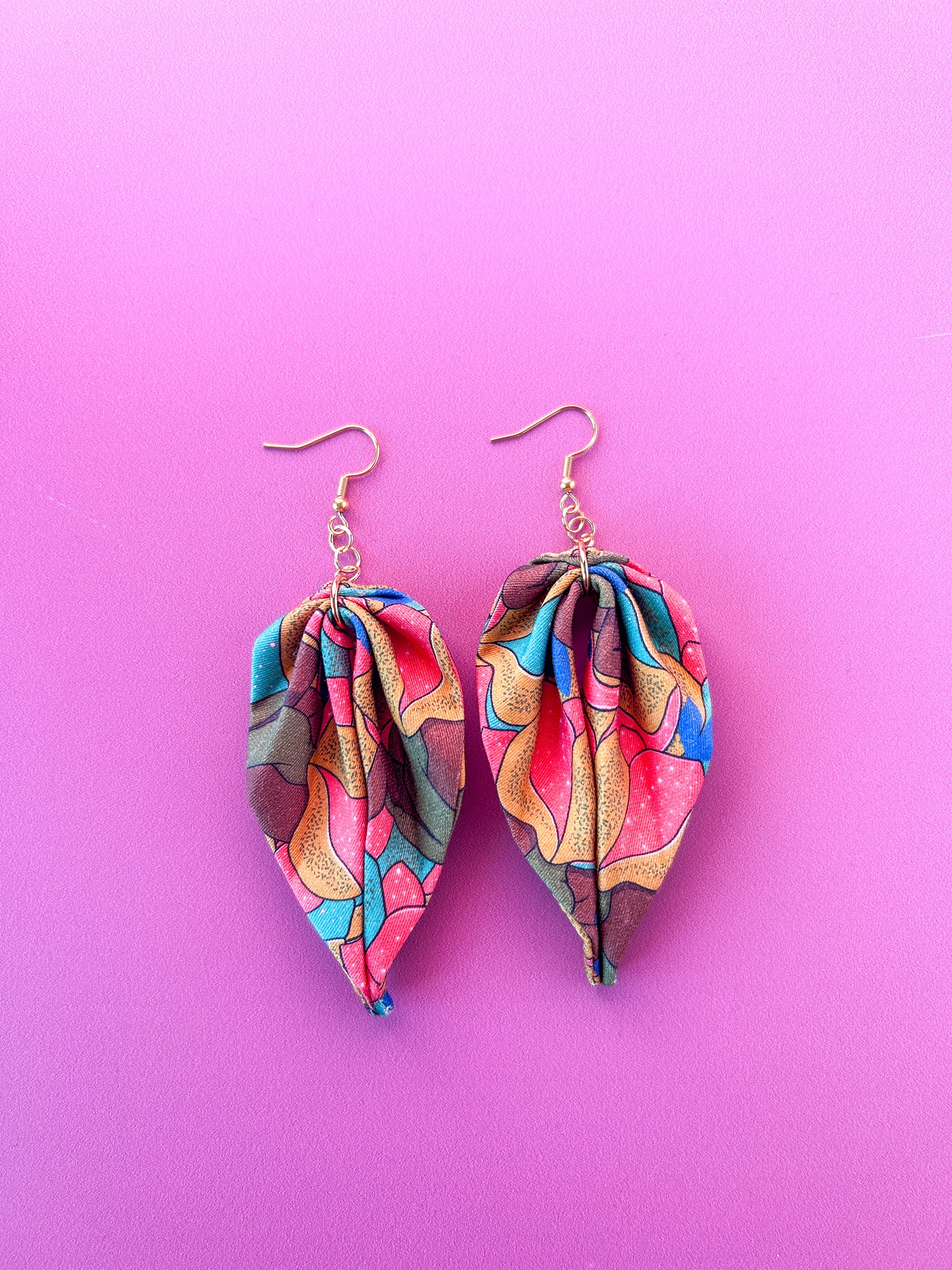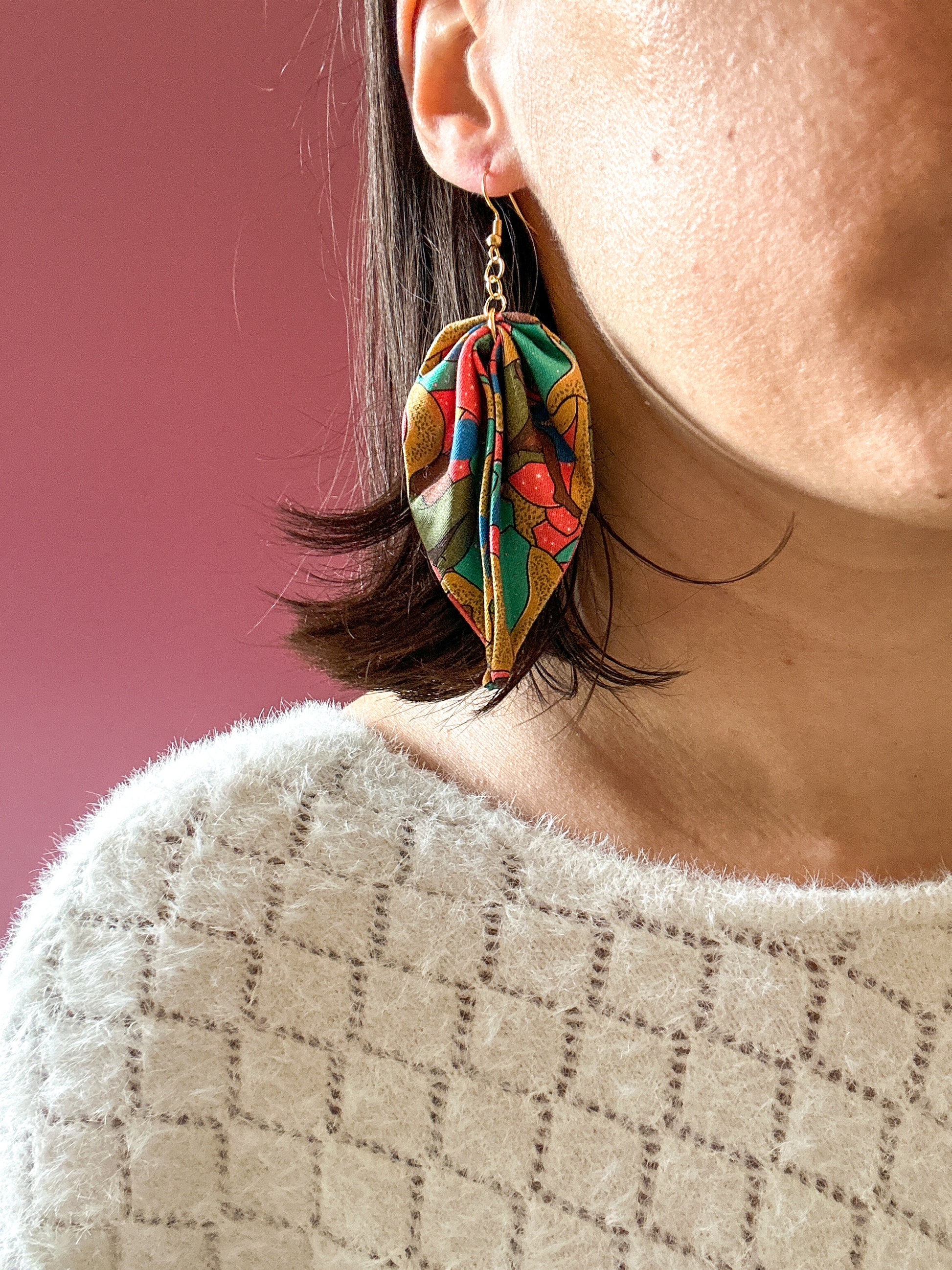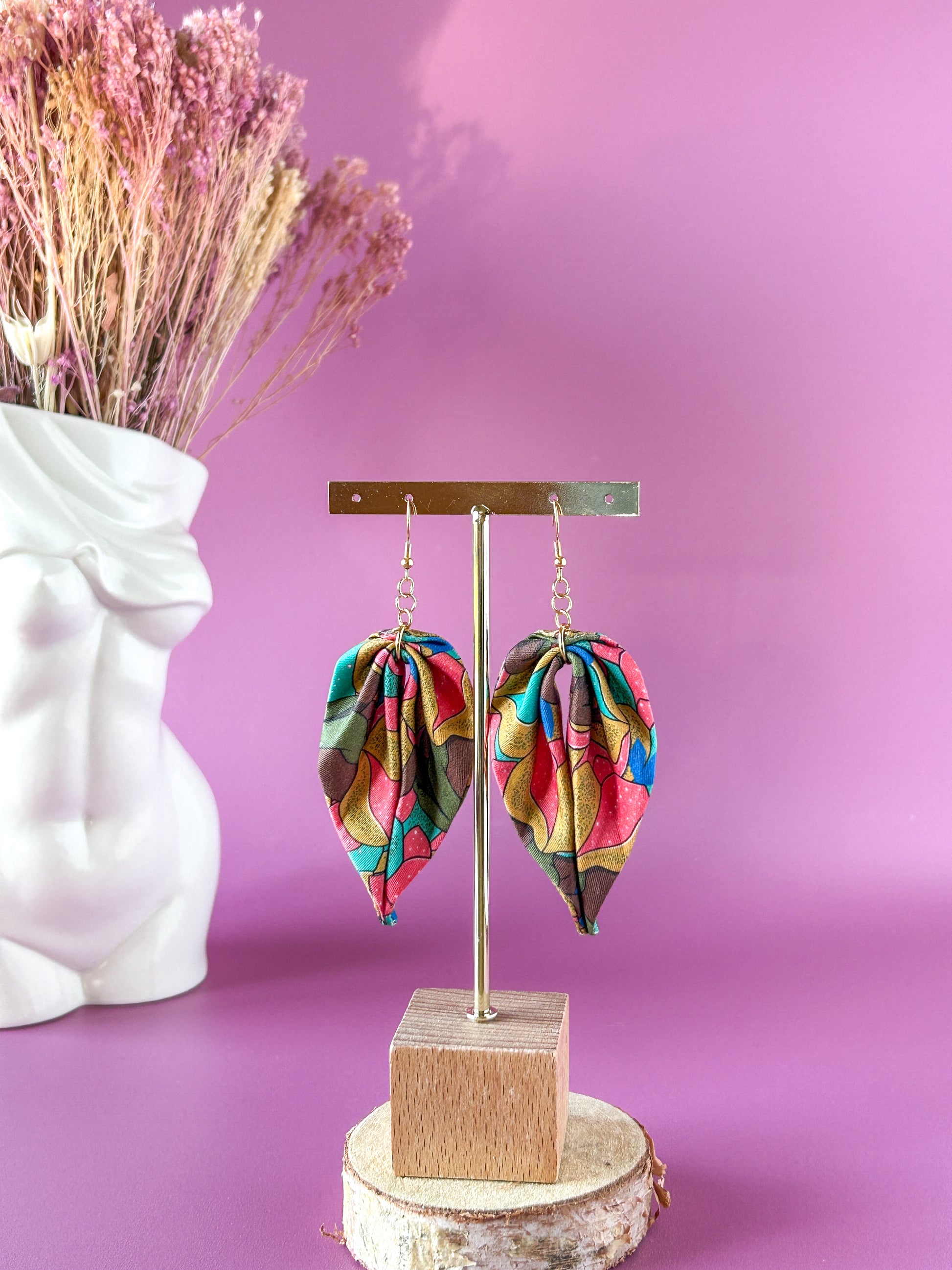 Matières : Boucles d'oreilles en tissu et acier inoxydable, très légères et agréables à porter.