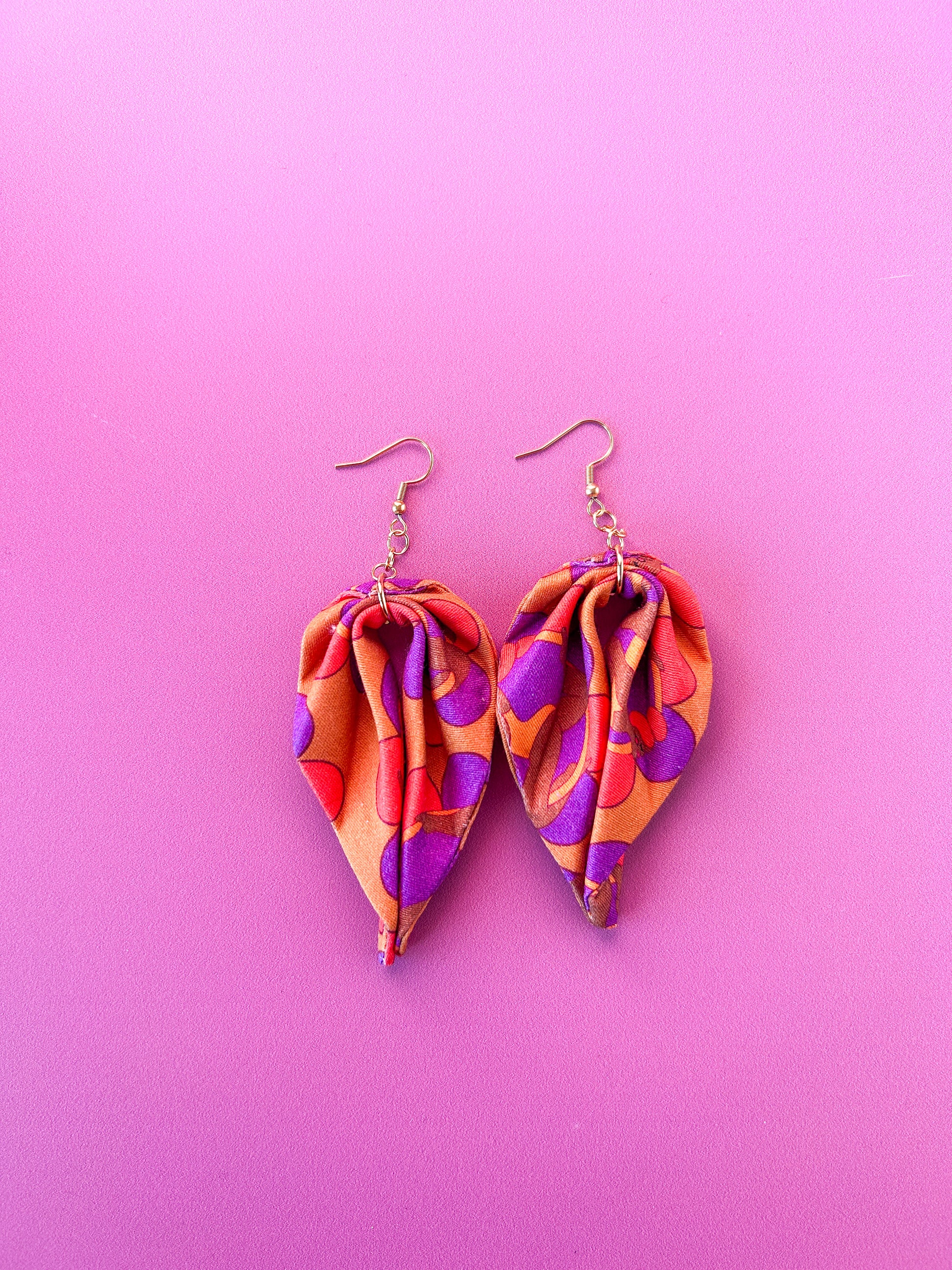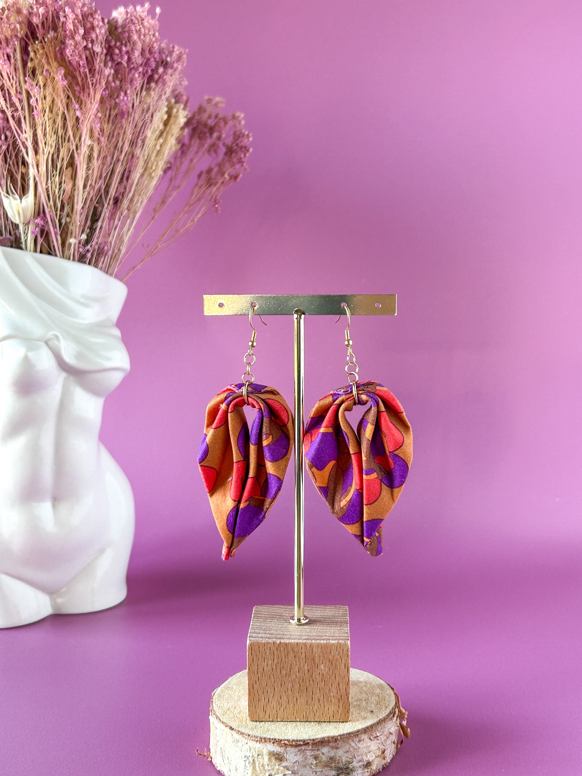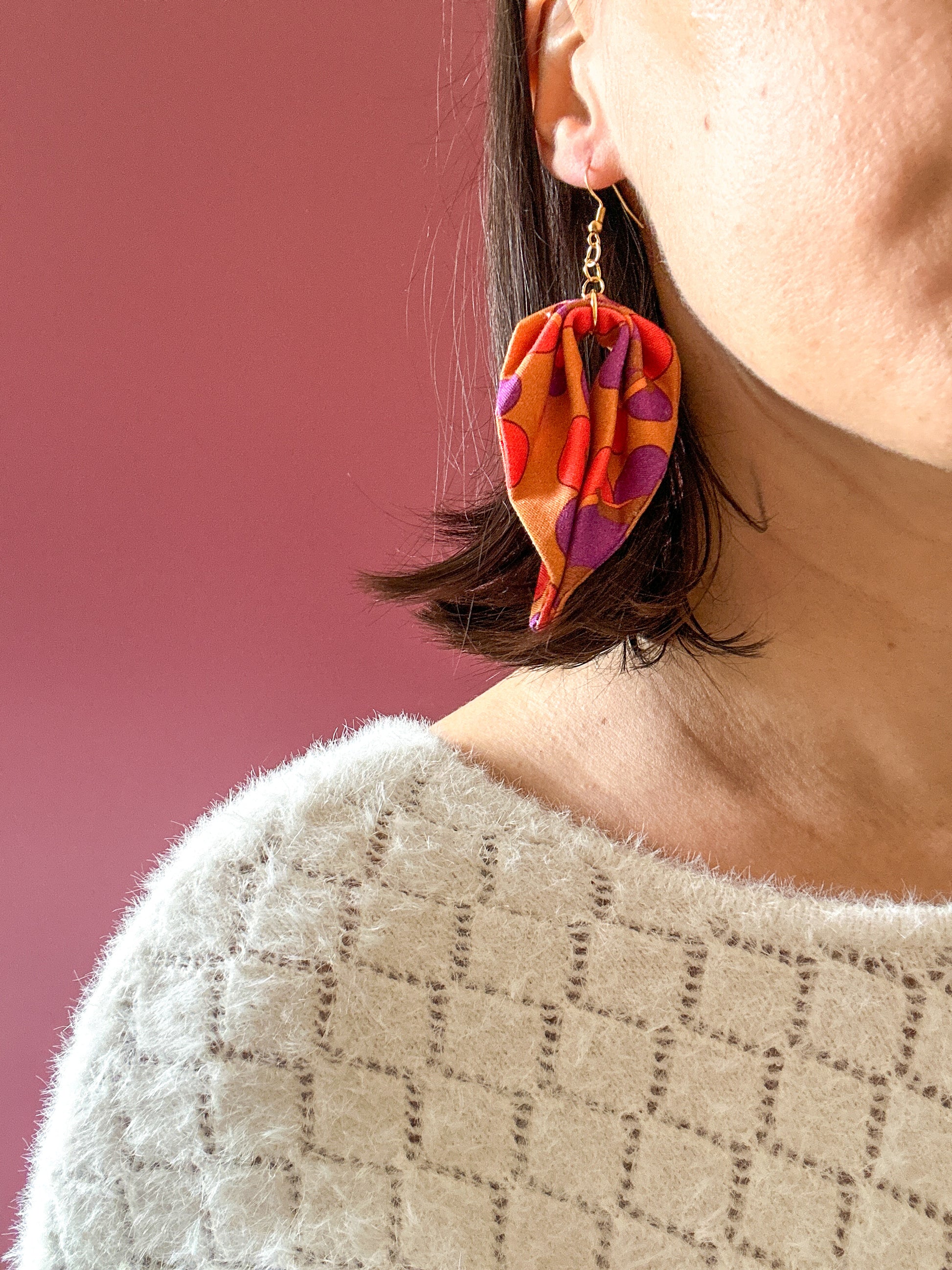 Matières : Boucles d'oreilles en tissu et acier inoxydable, très légères et agréables à porter.