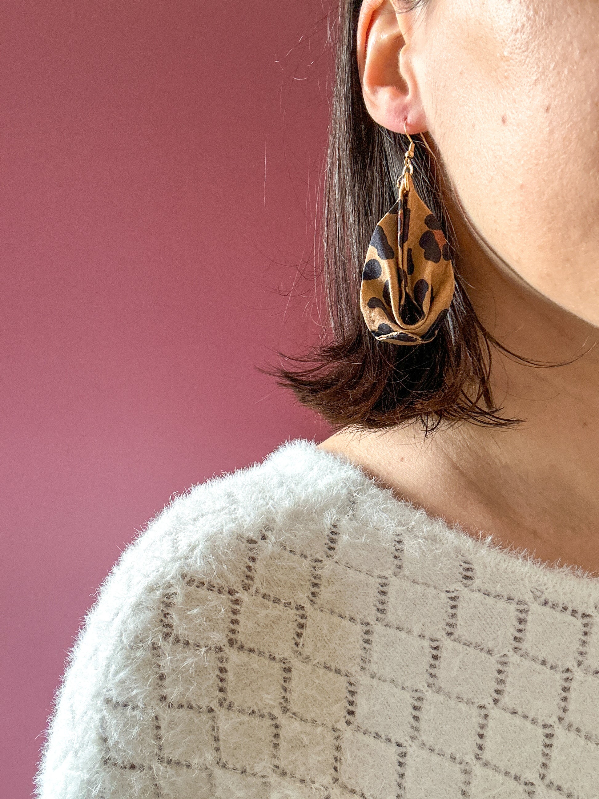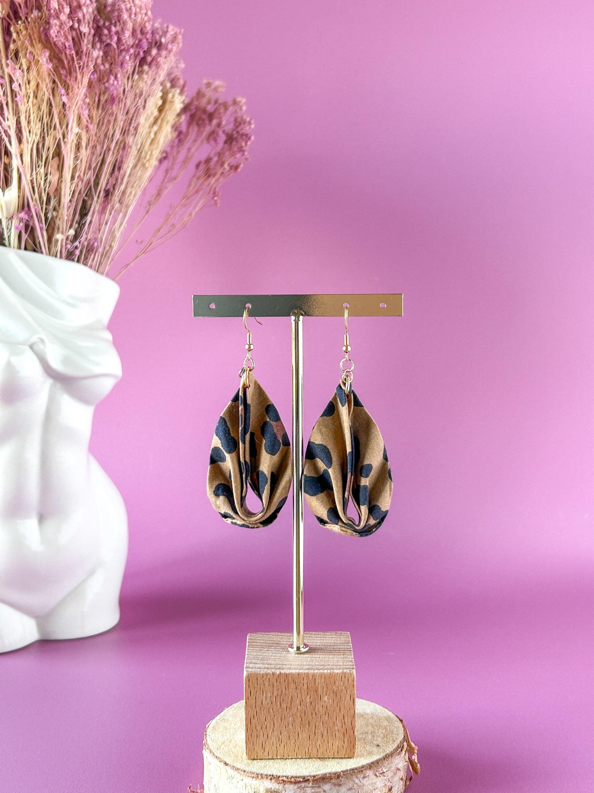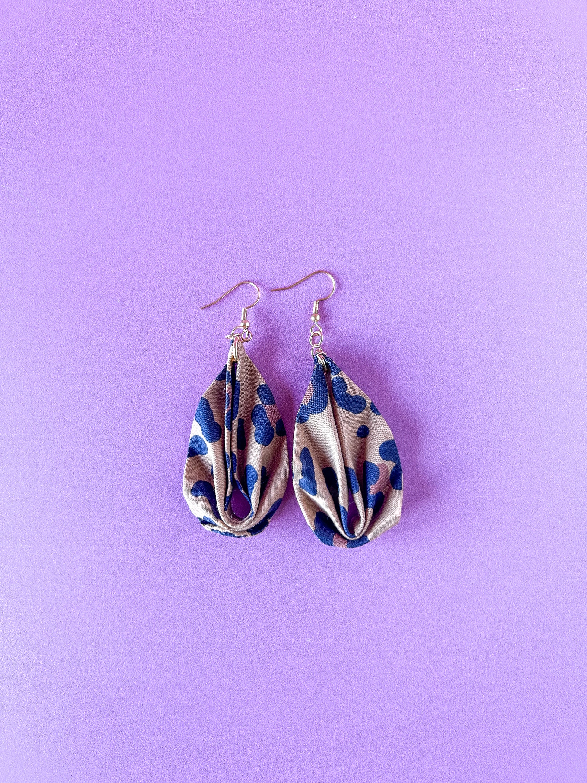 Matières : Boucles d'oreilles en tissu et acier inoxydable, très légères et agréables à porter.