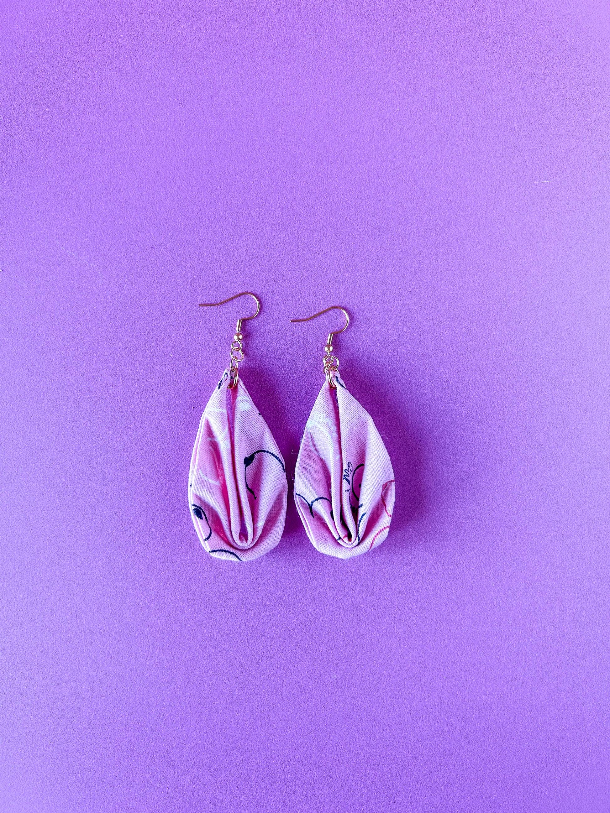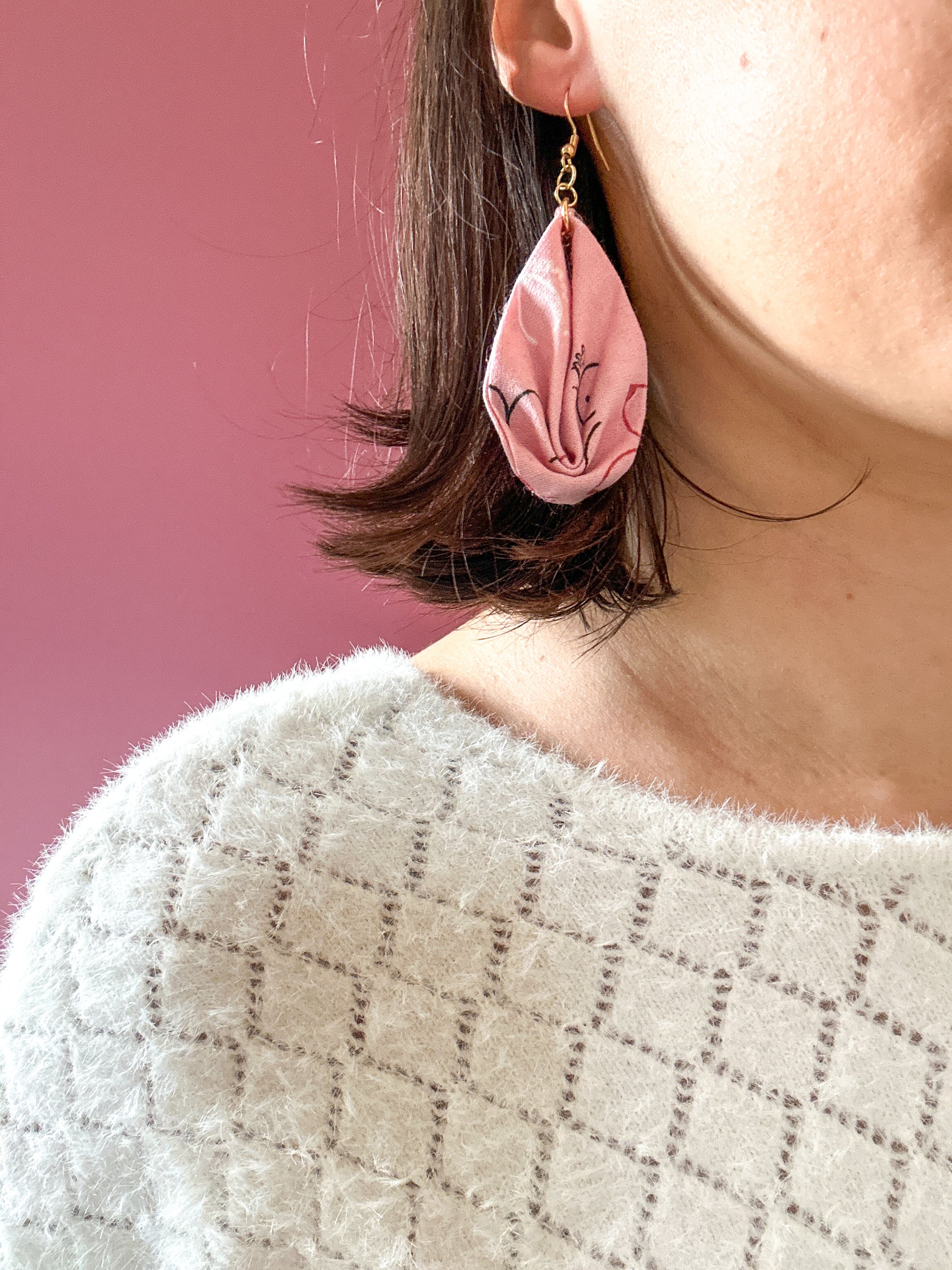 Matières : Boucles d'oreilles en tissu et acier inoxydable, très légères et agréables à porter.