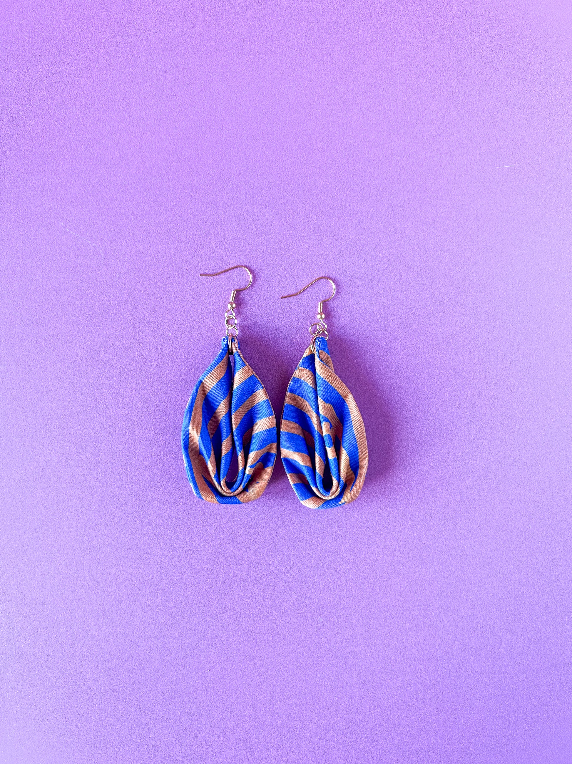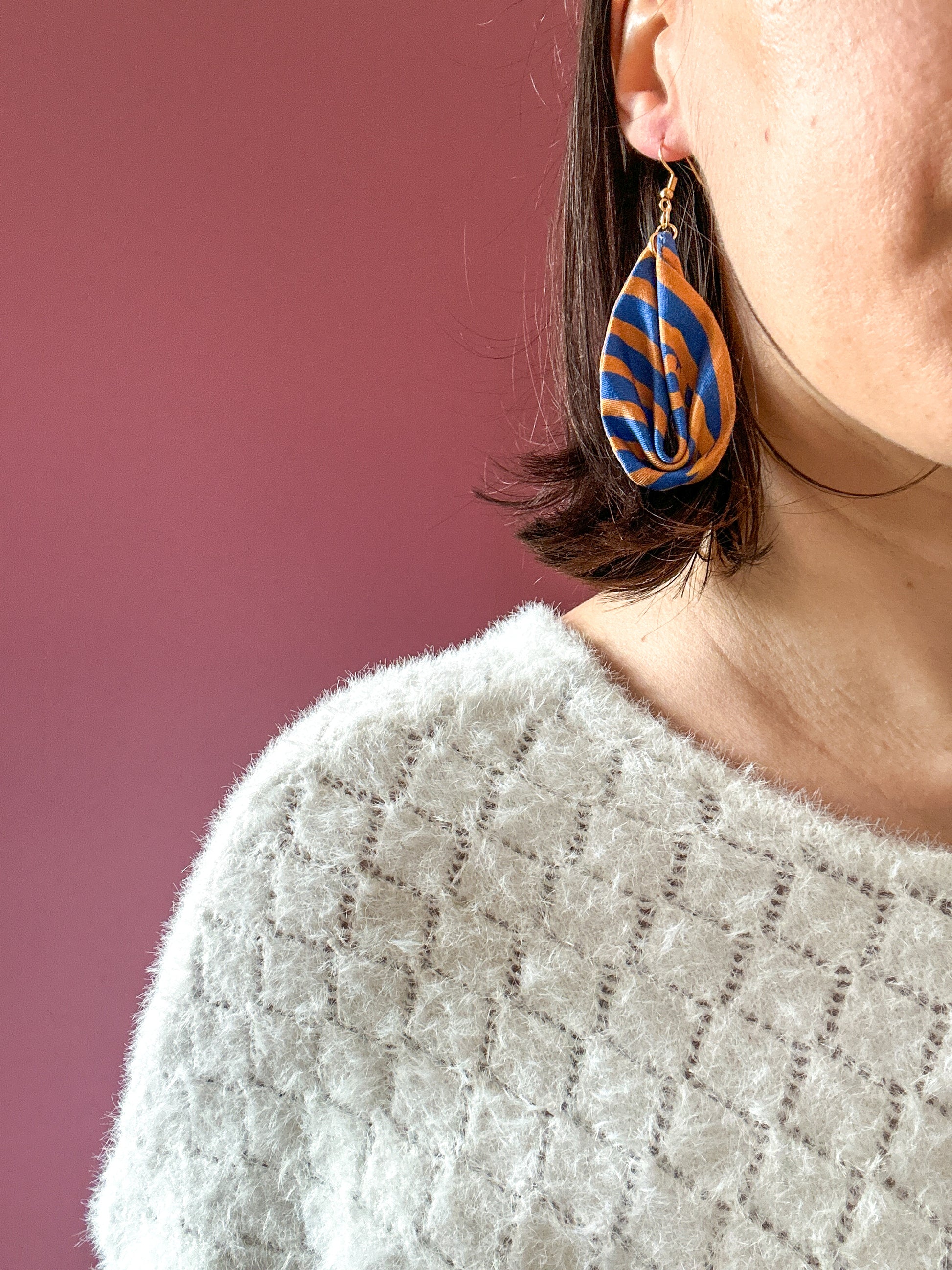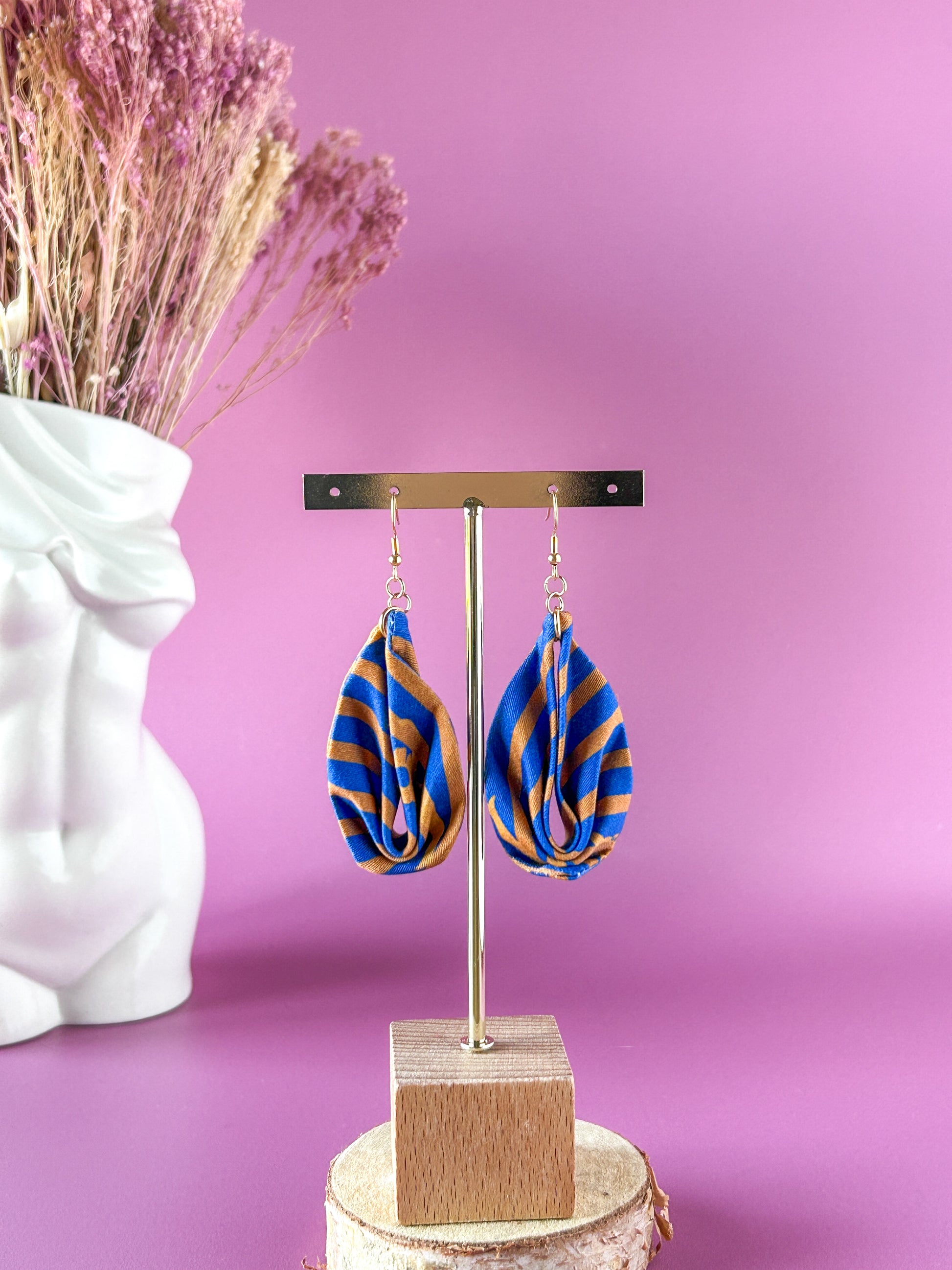 Matières : Boucles d'oreilles en tissu et acier inoxydable, très légères et agréables à porter.
