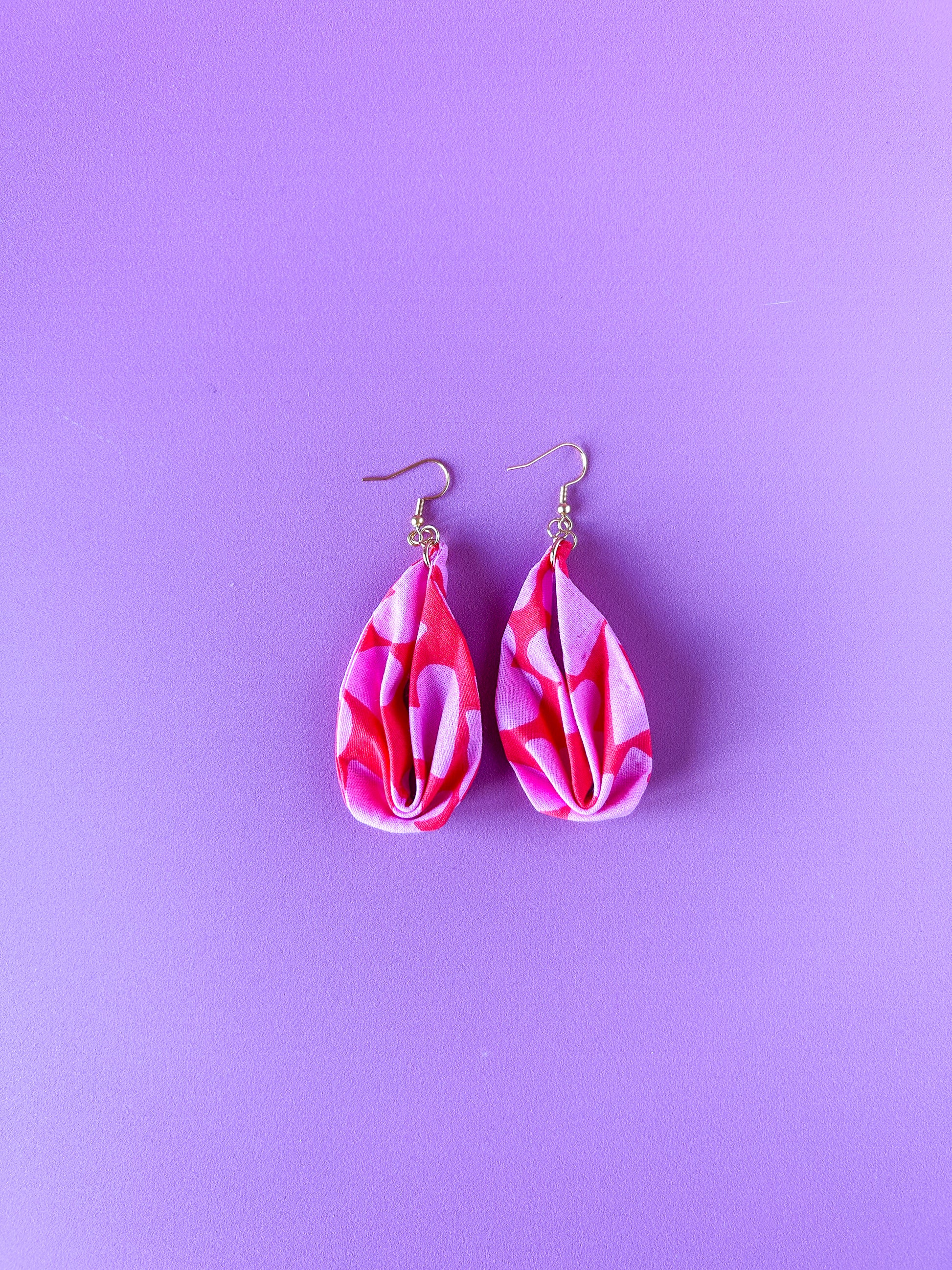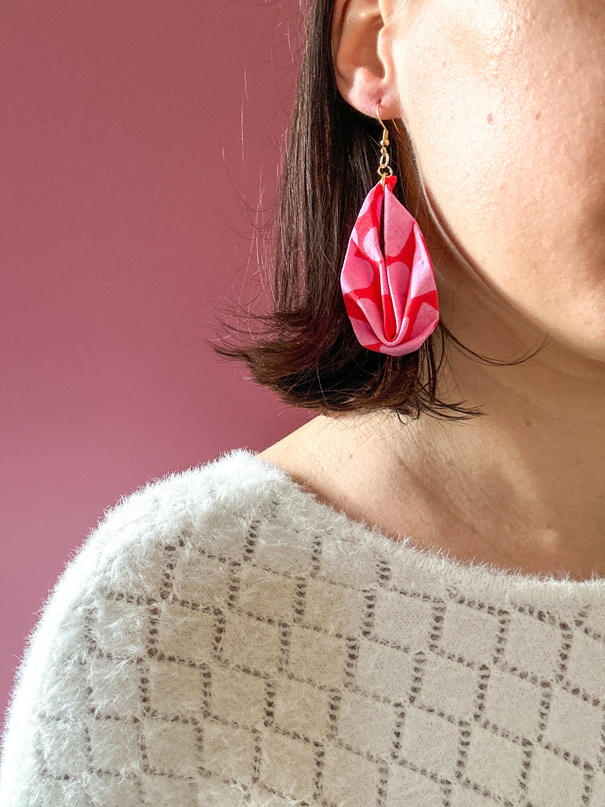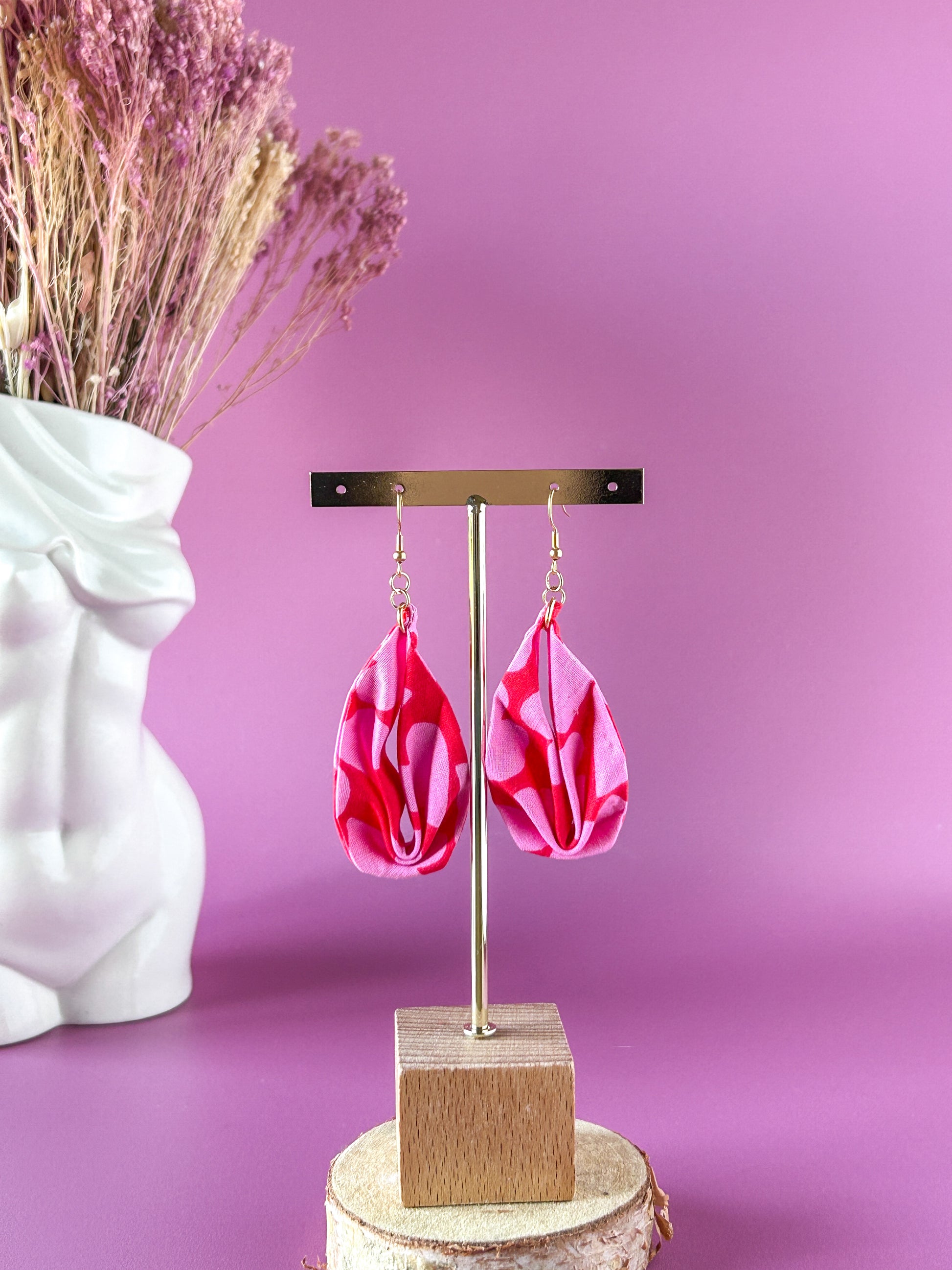 Matières : Boucles d'oreilles en tissu et acier inoxydable, très légères et agréables à porter.