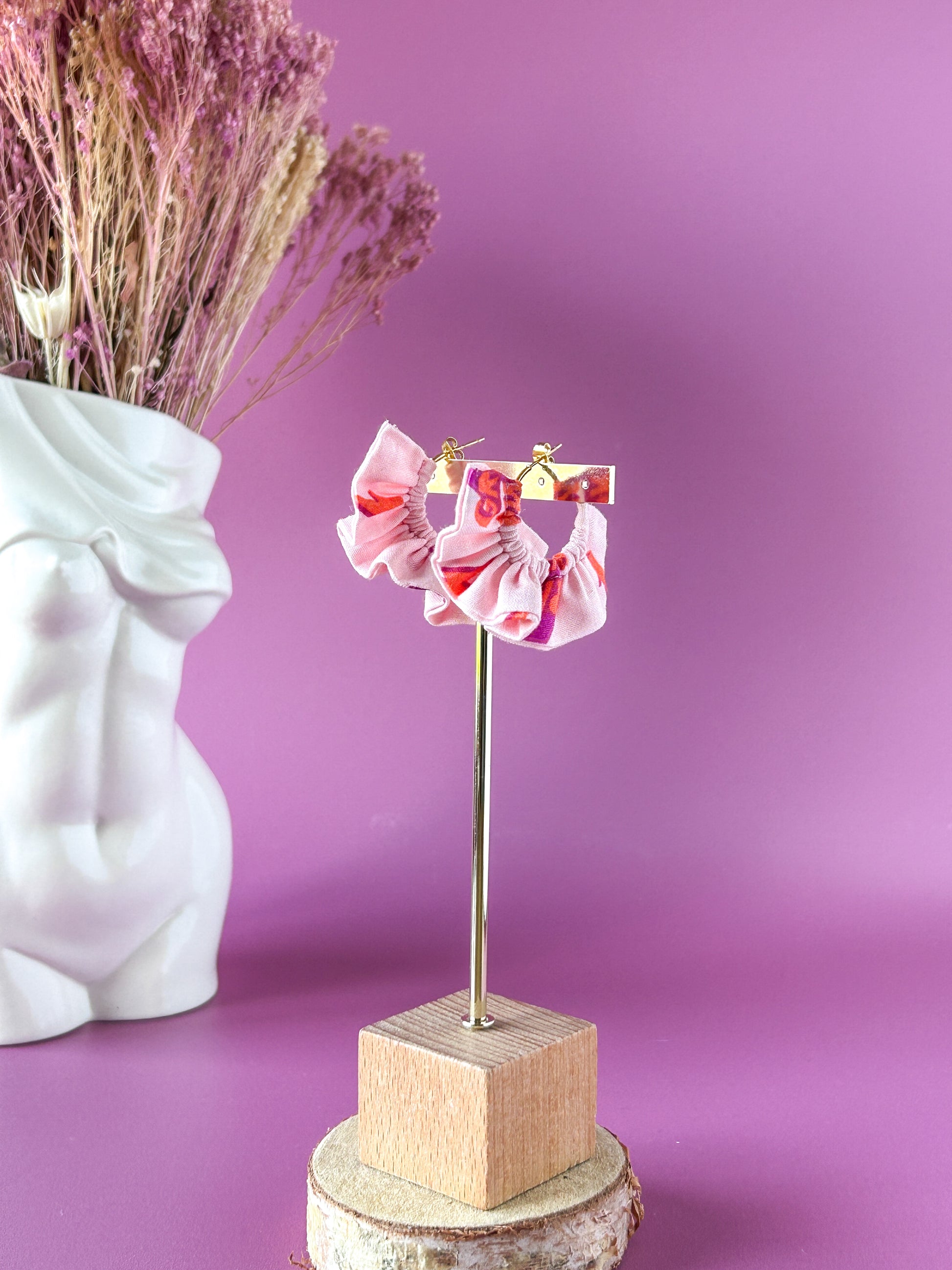 Matières : Boucles d'oreilles en tissu et acier inoxydable, très légères et agréables à porter.