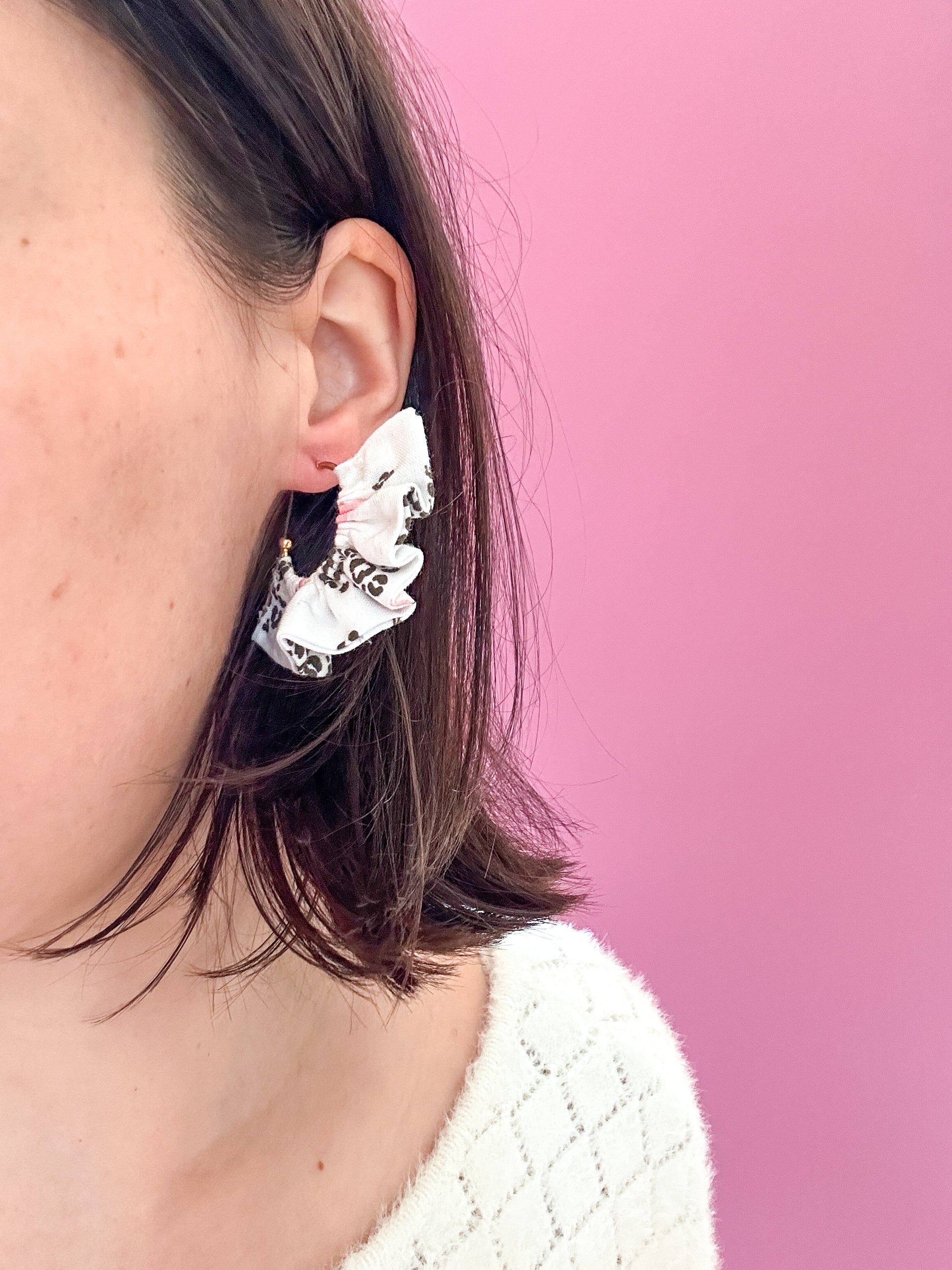 Matières : Boucles d'oreilles en tissu et acier inoxydable, très légères et agréables à porter.