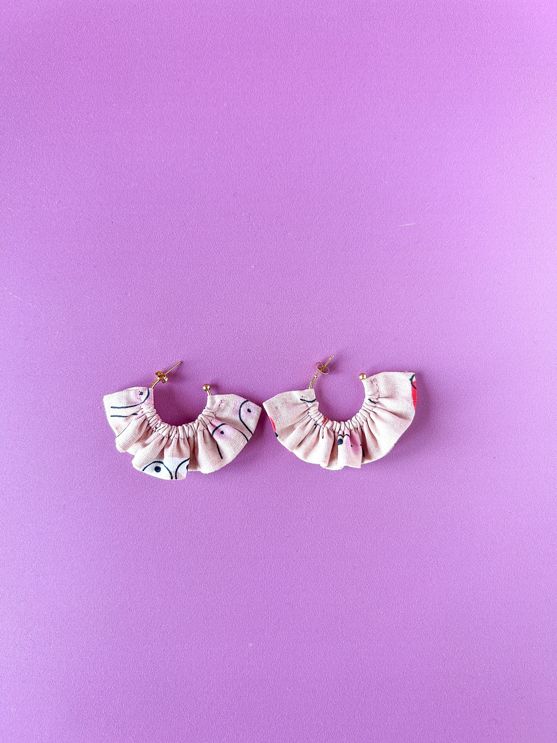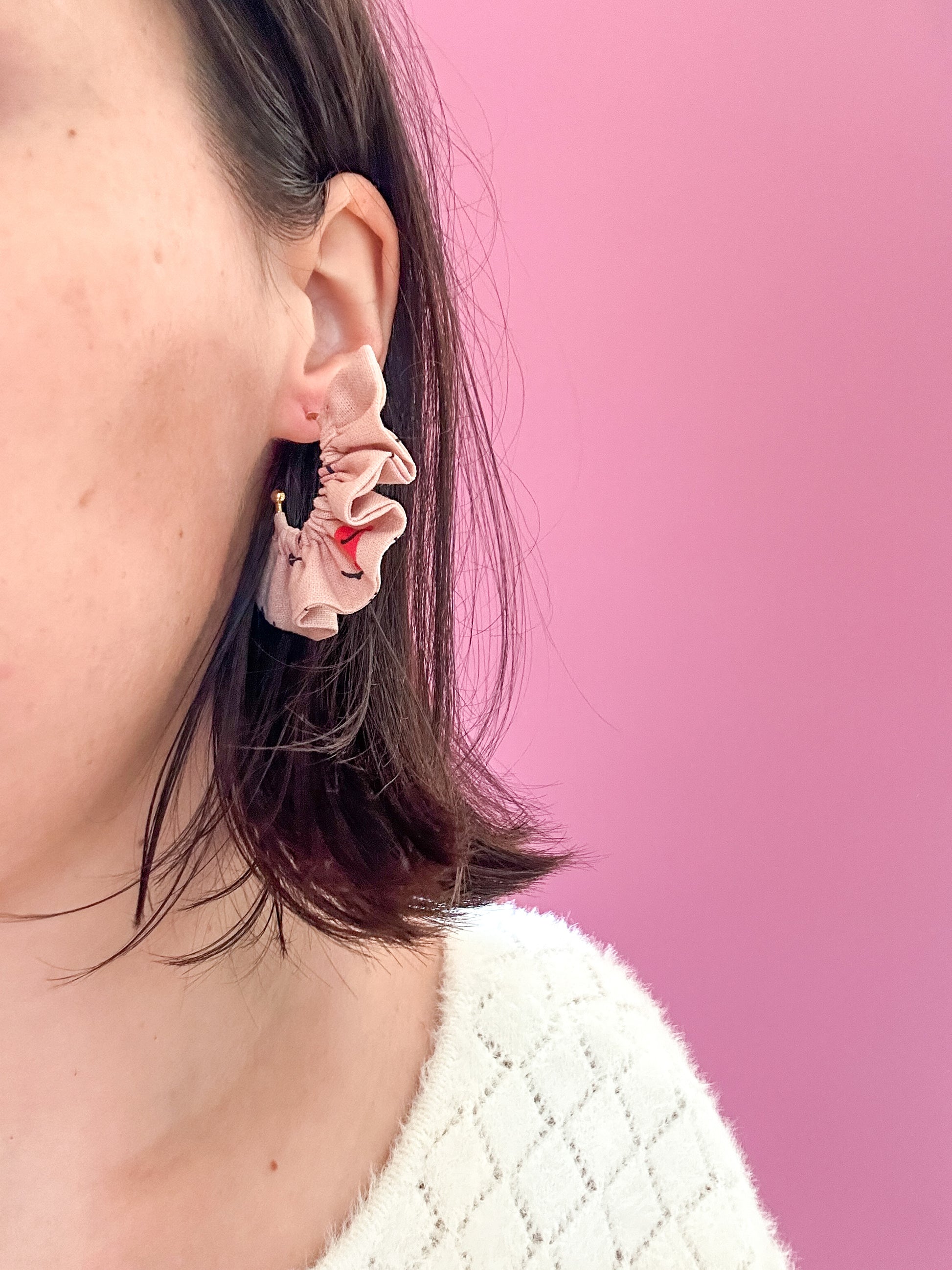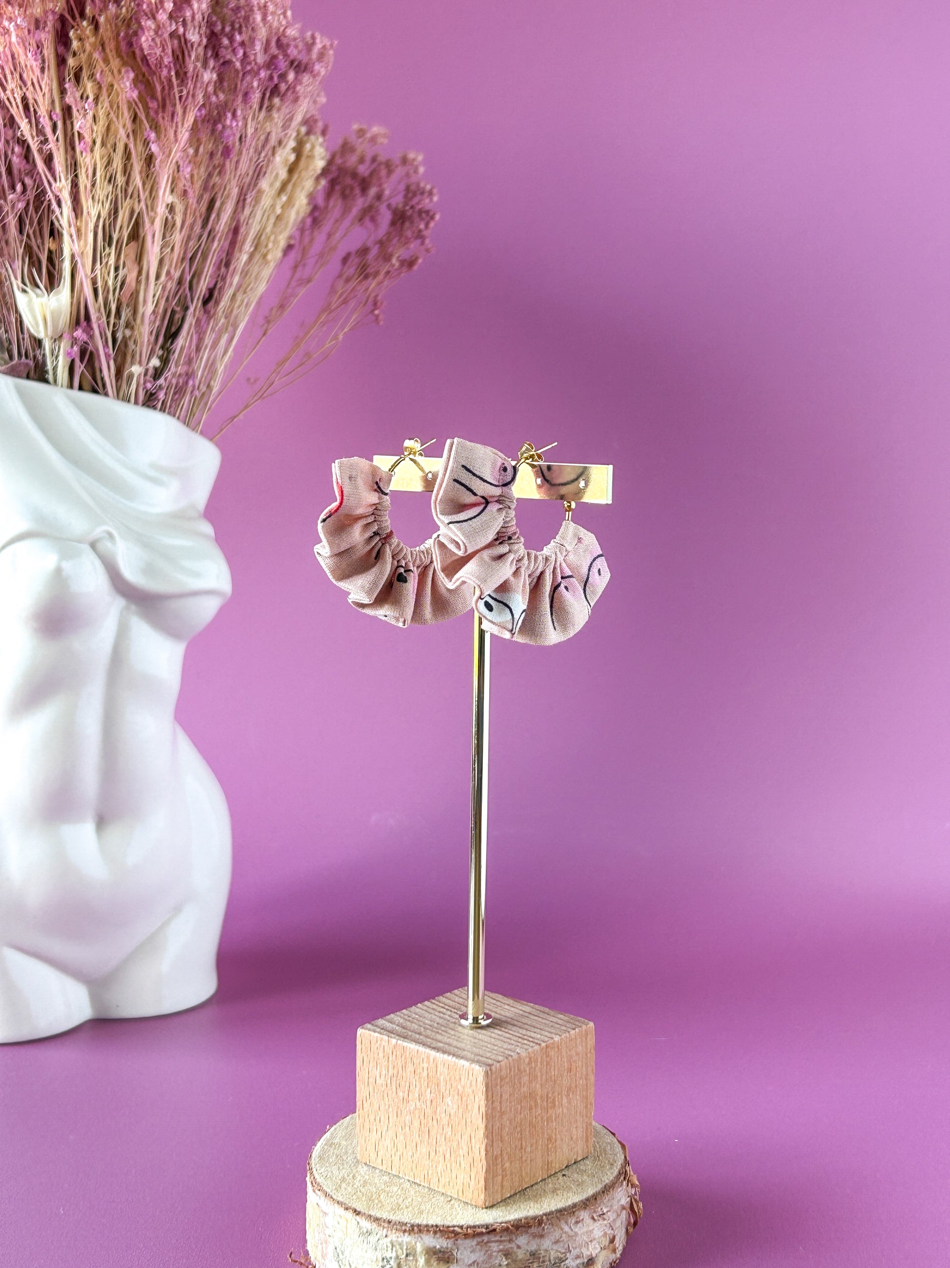 Matières : Boucles d'oreilles en tissu et acier inoxydable, très légères et agréables à porter.