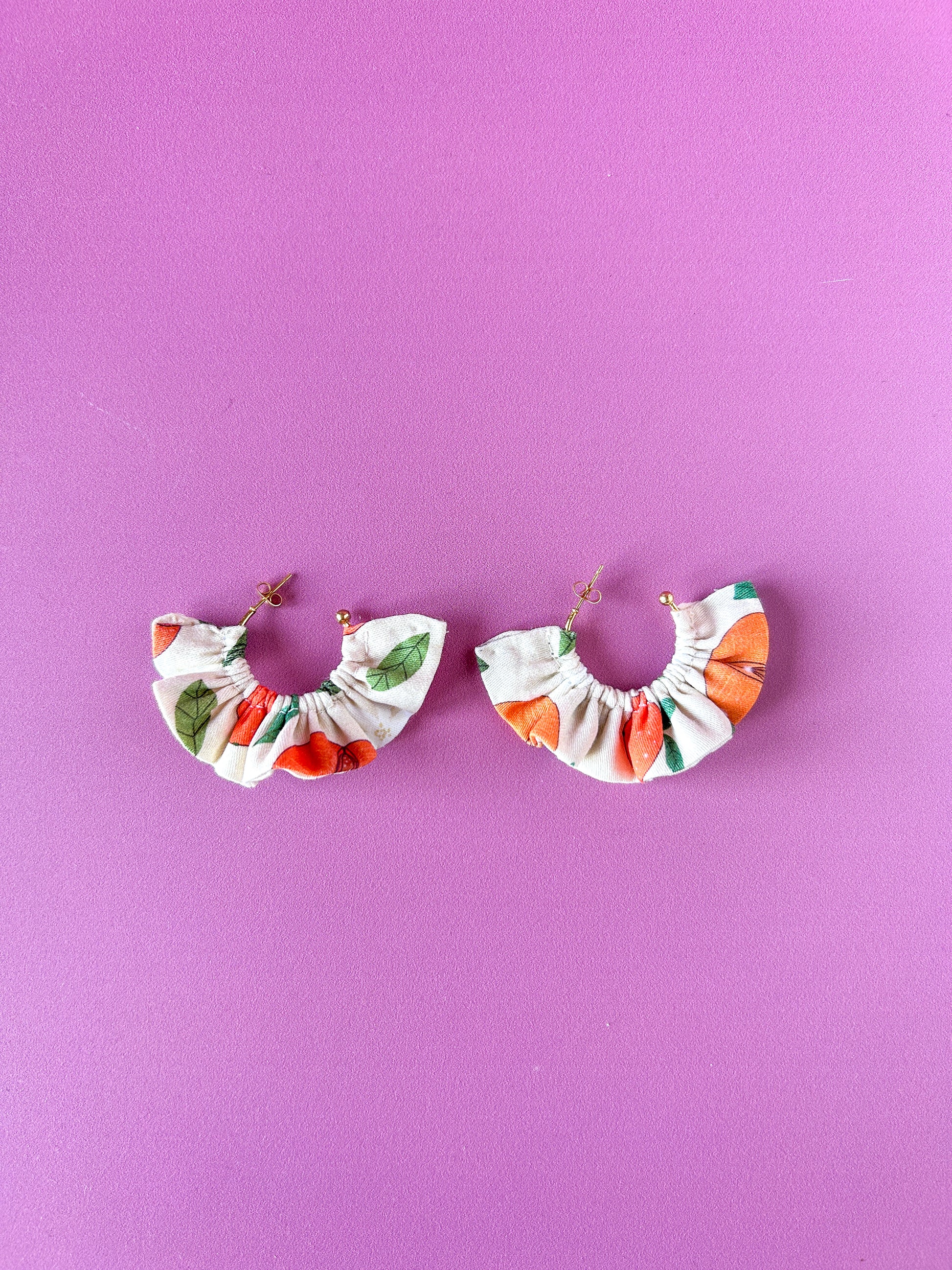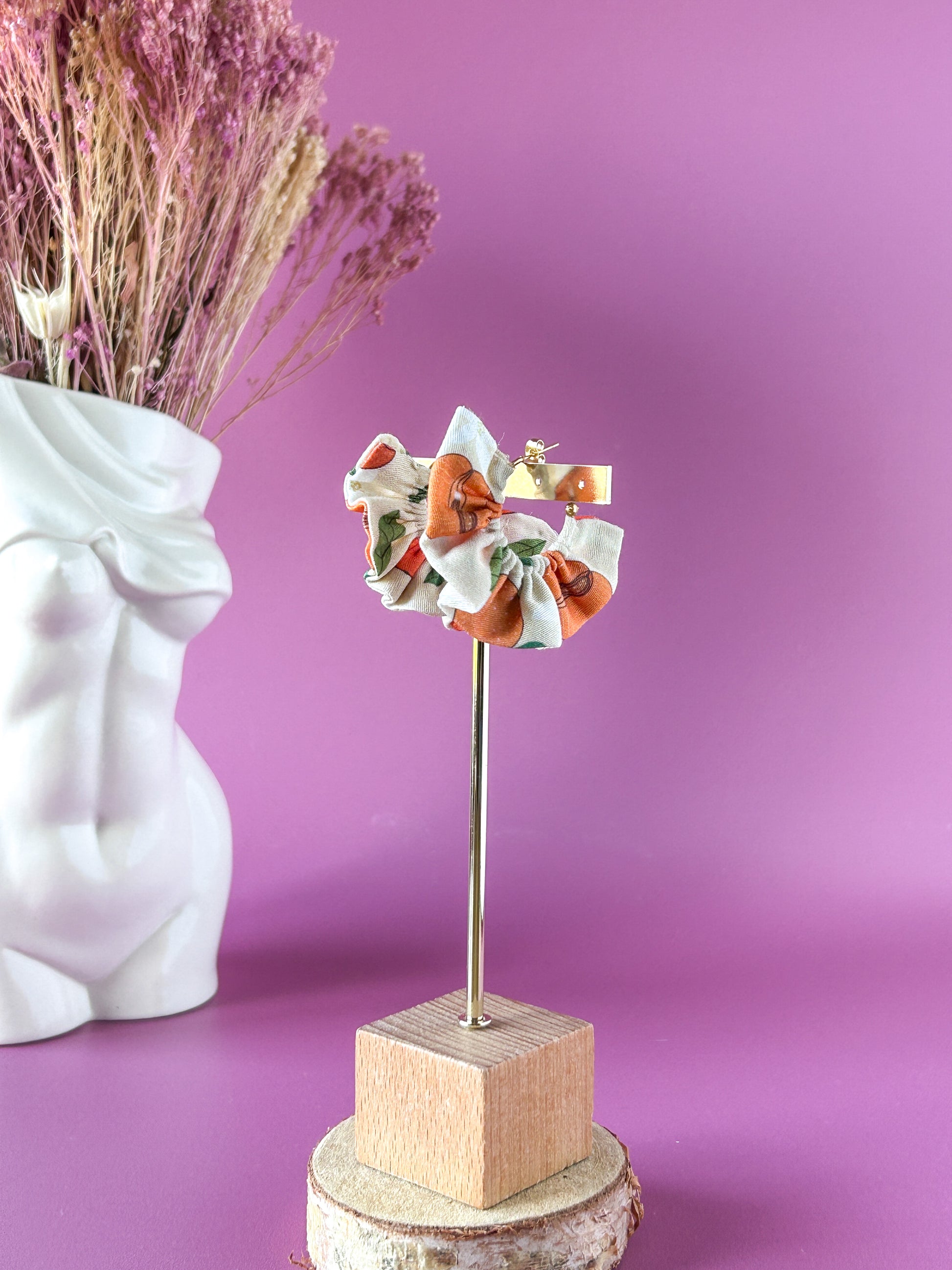 Matières : Boucles d'oreilles en tissu et acier inoxydable, très légères et agréables à porter.