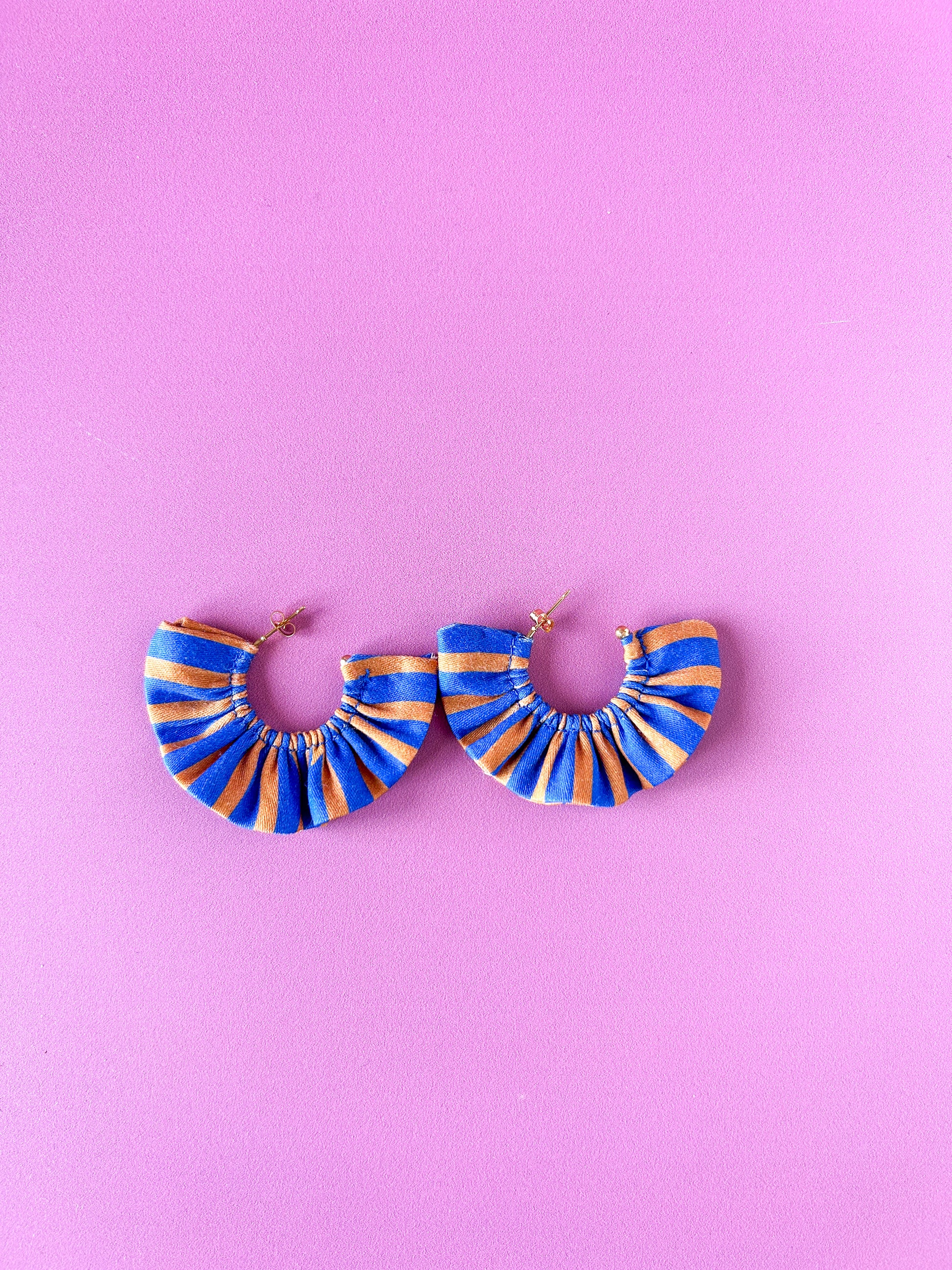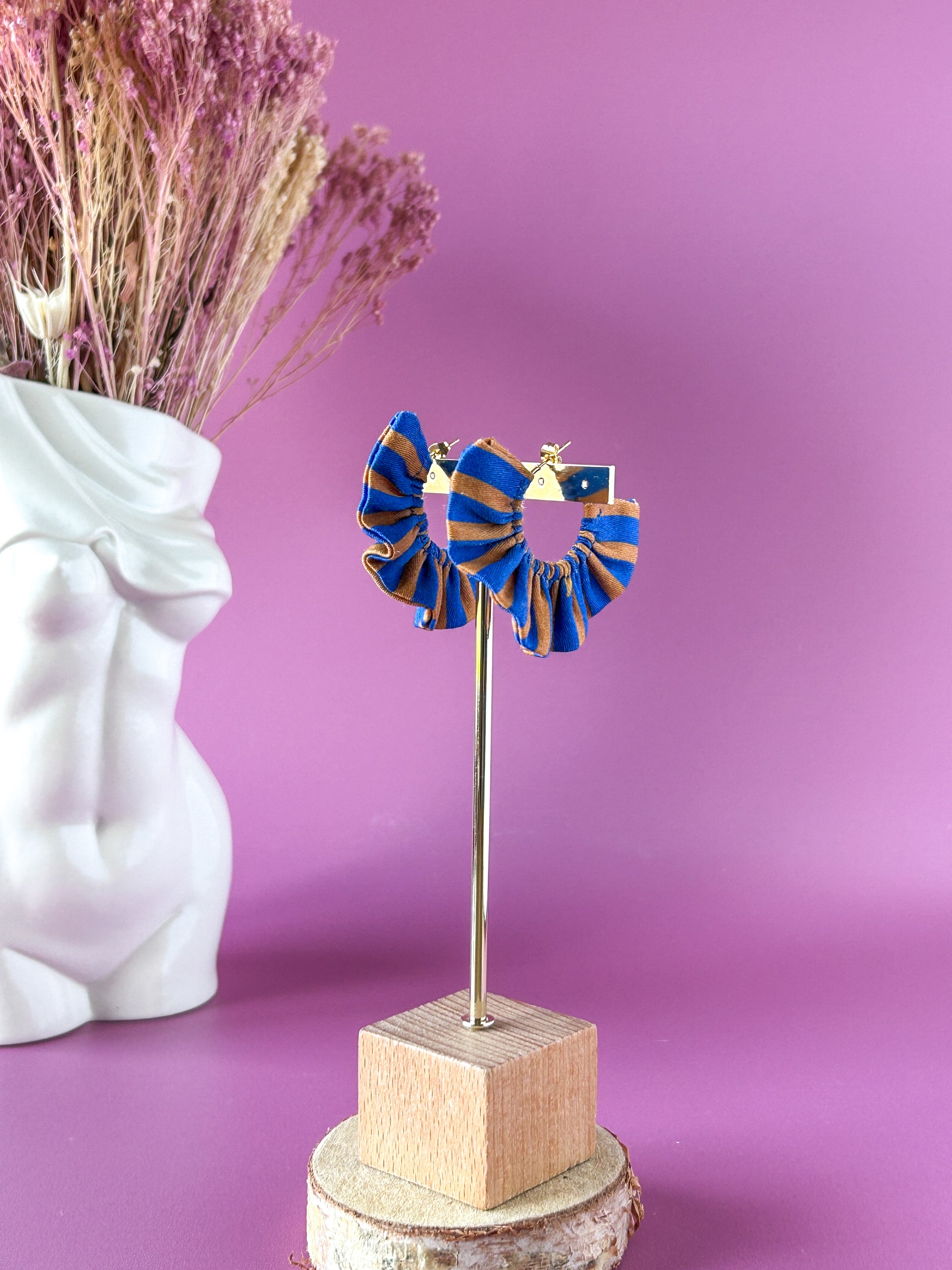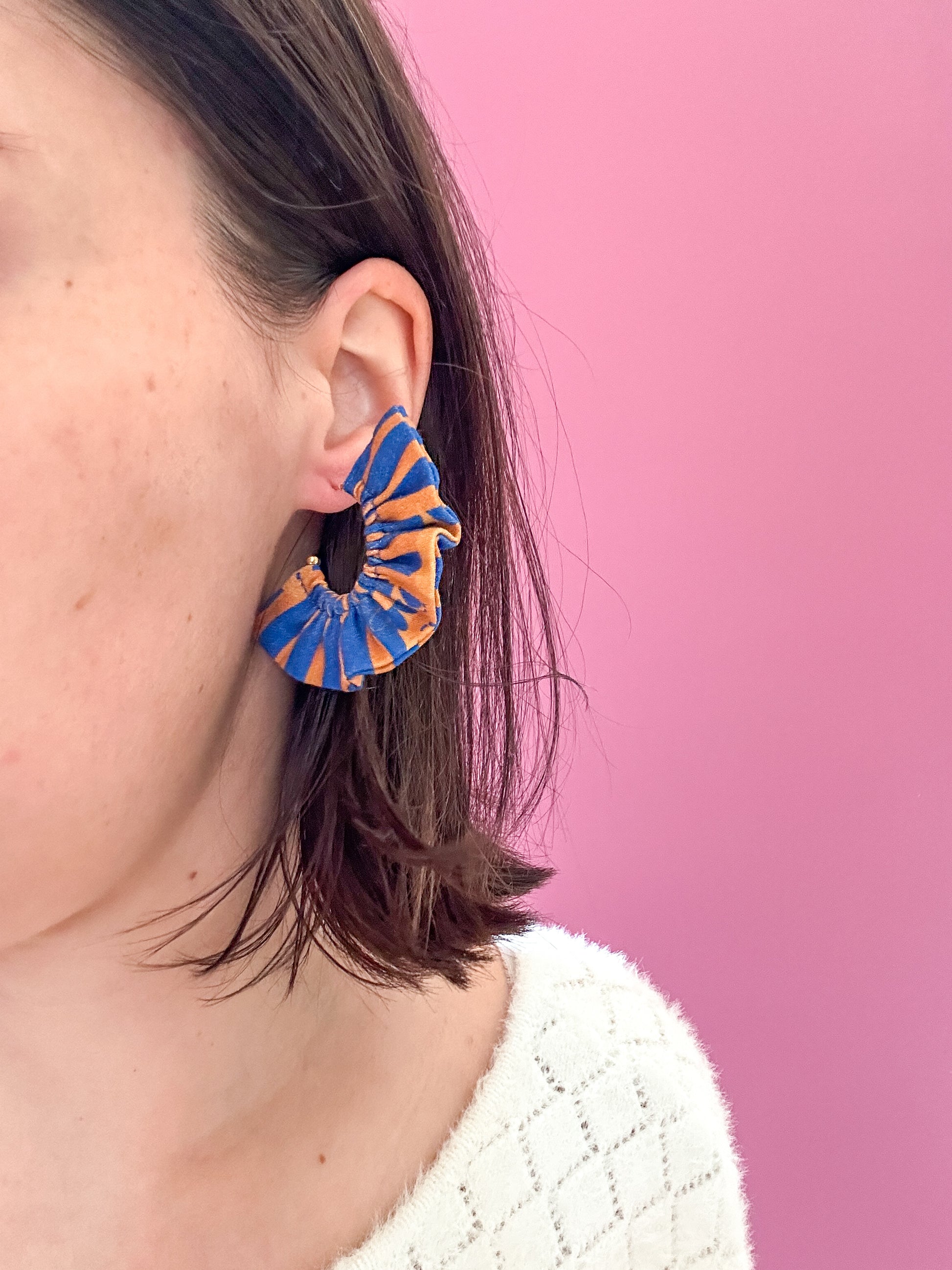 Matières : Boucles d'oreilles en tissu et acier inoxydable, très légères et agréables à porter.