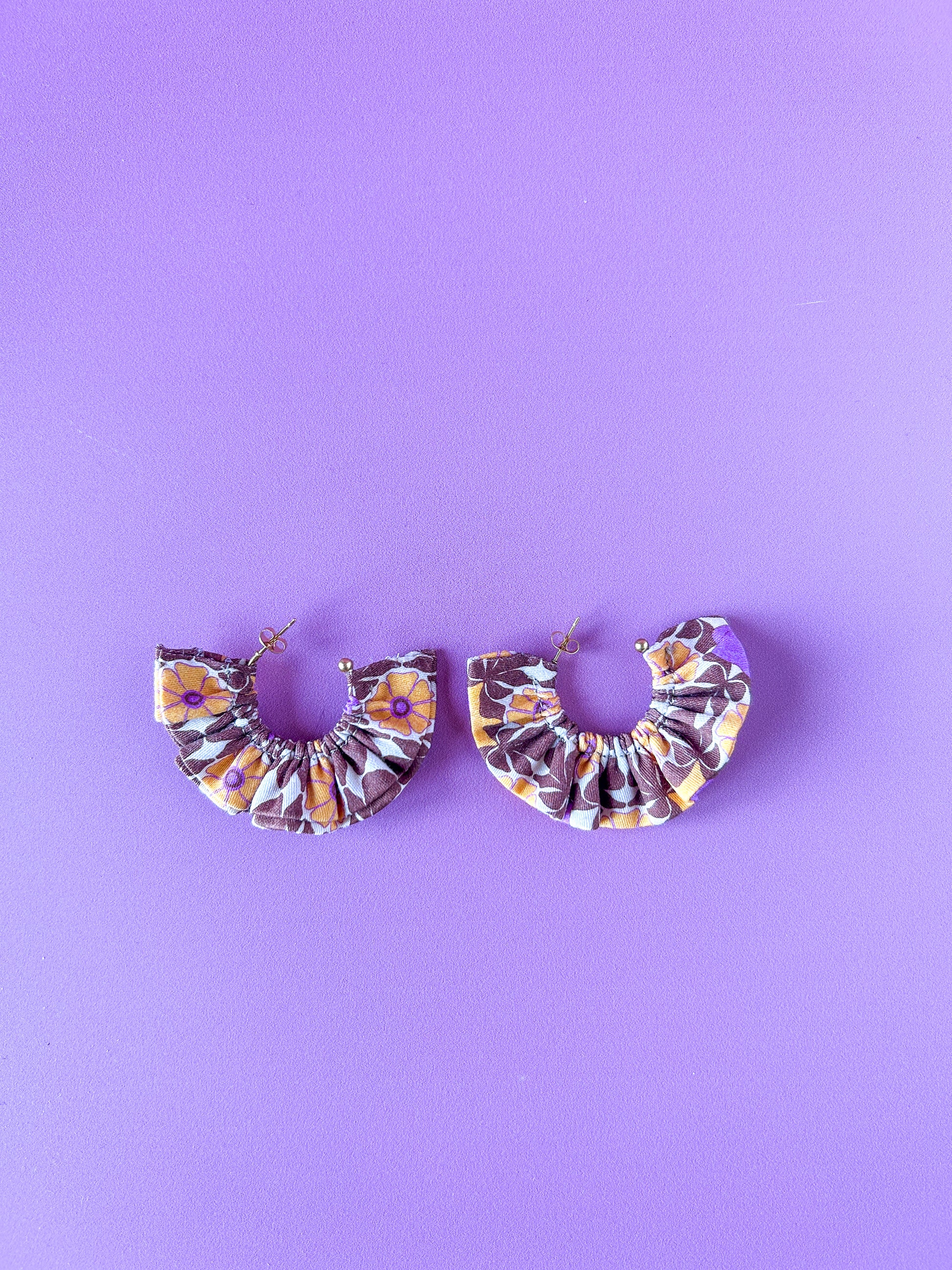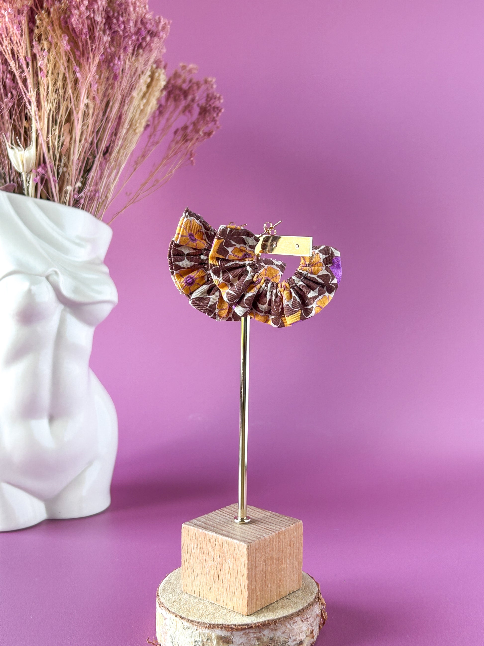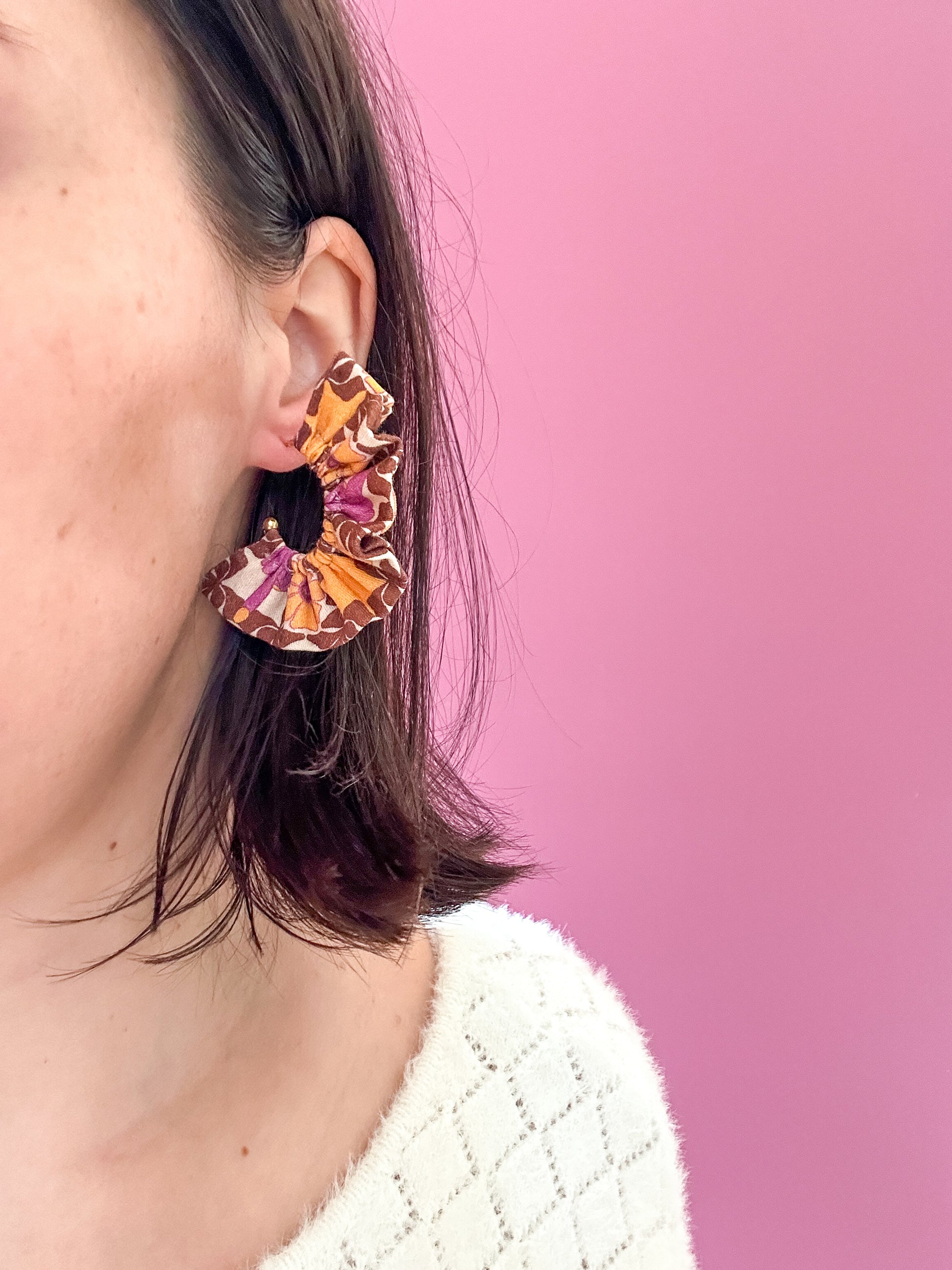 Matières : Boucles d'oreilles en tissu et acier inoxydable, très légères et agréables à porter.