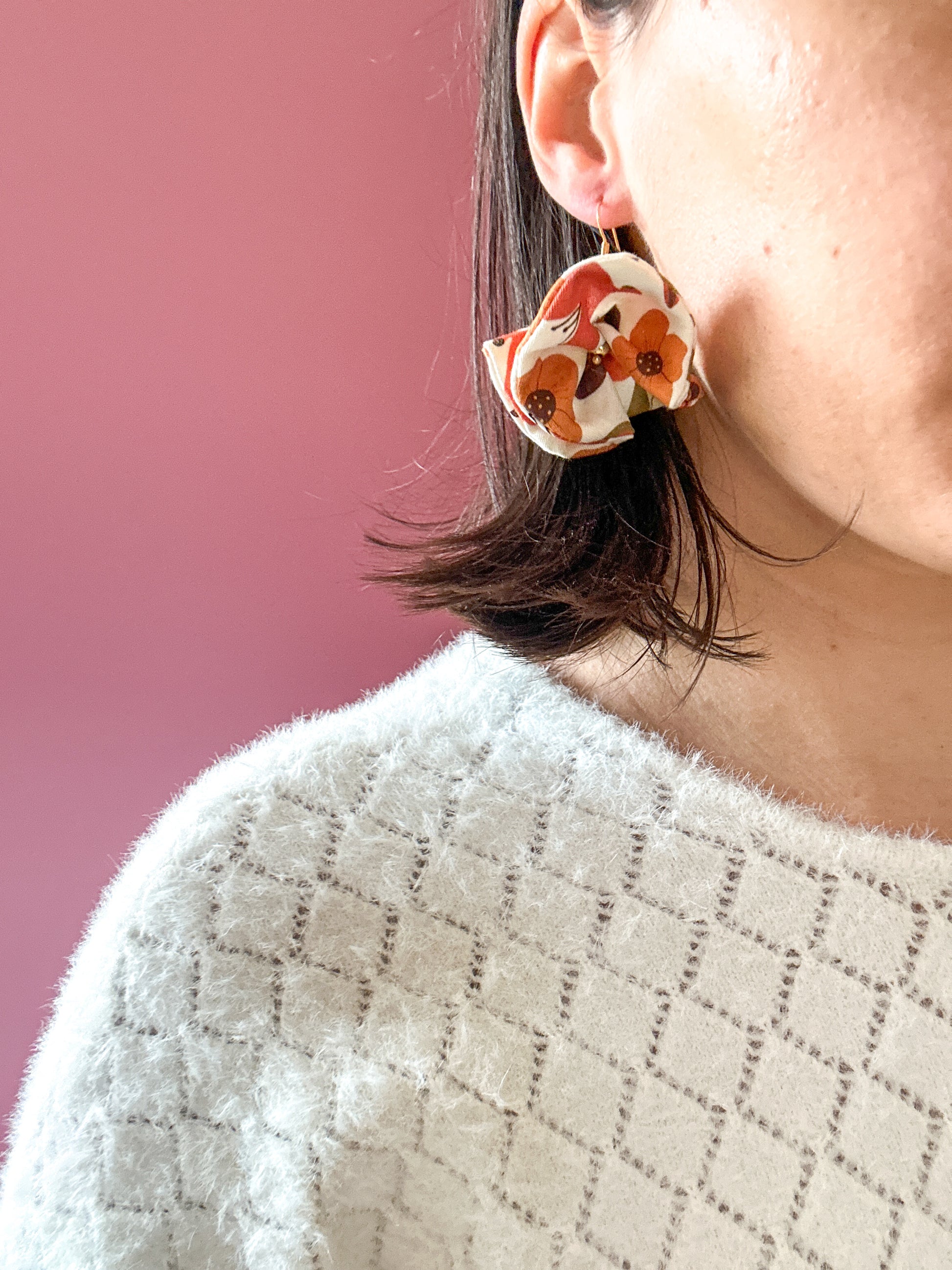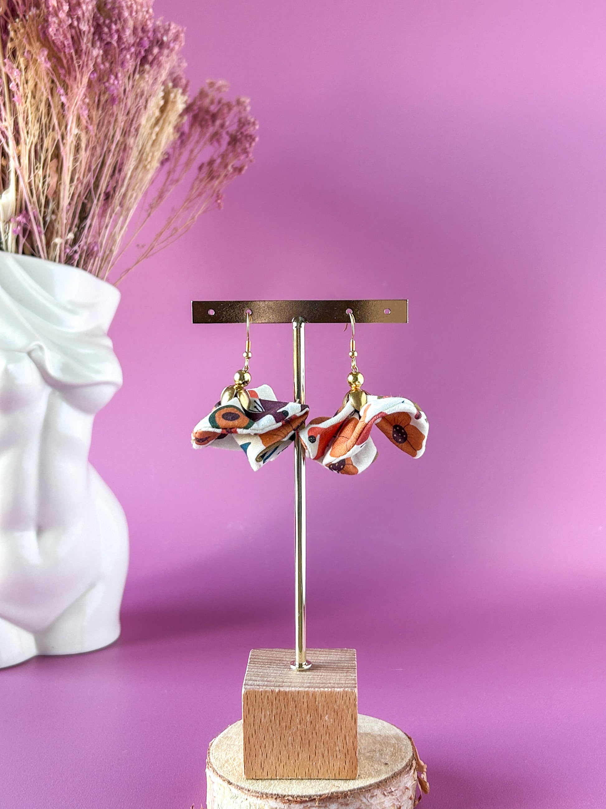 Matières : Boucles d'oreilles en tissu et acier inoxydable, très légères et agréables à porter.