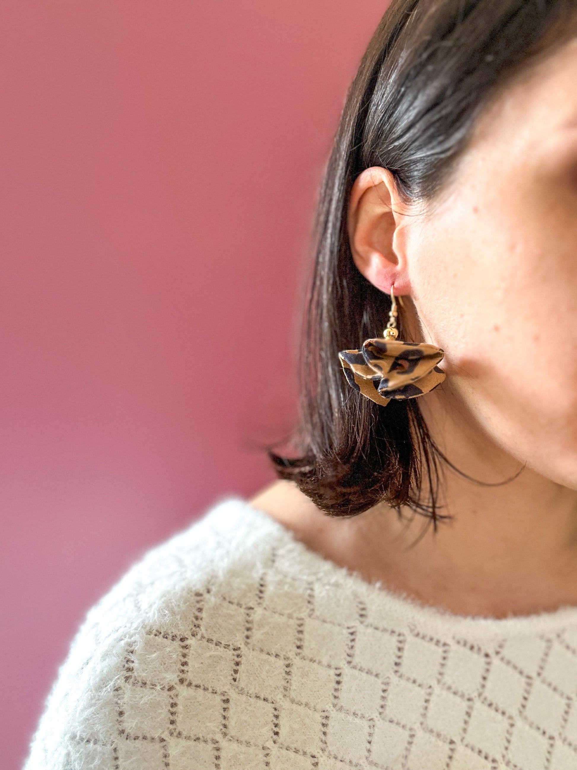 Matières : Boucles d'oreilles en tissu et acier inoxydable, très légères et agréables à porter.