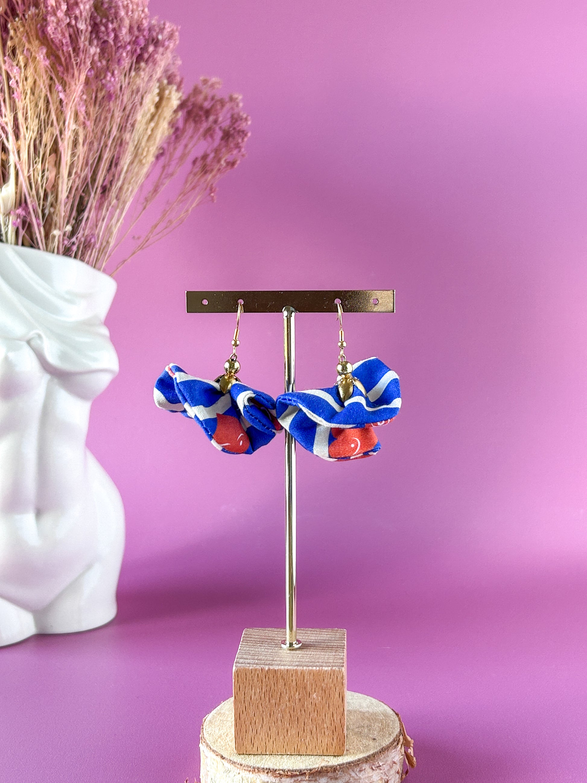 Matières : Boucles d'oreilles en tissu et acier inoxydable, très légères et agréables à porter.
