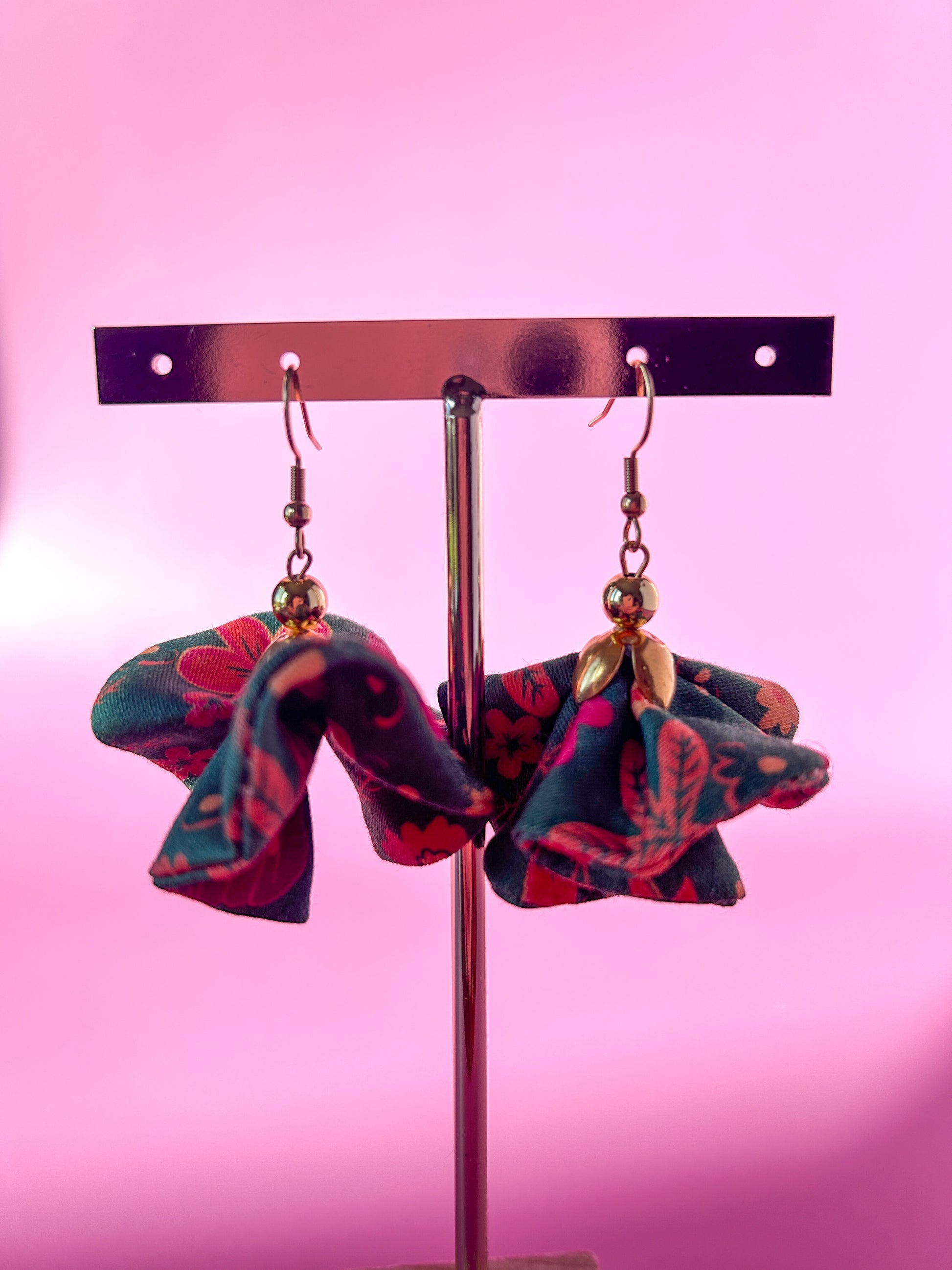 Matières : Boucles d'oreilles en tissu et acier inoxydable, très légères et agréables à porter.