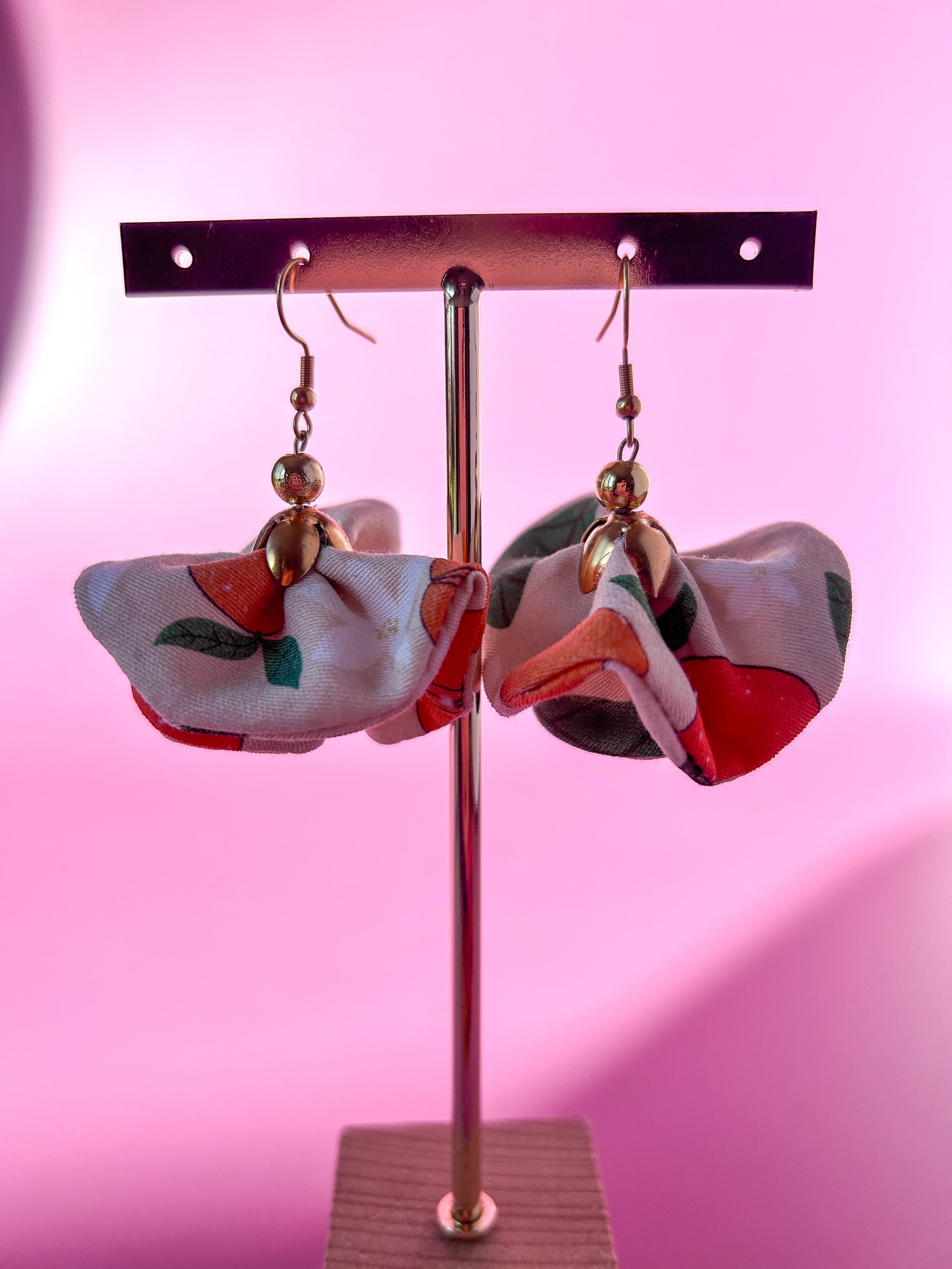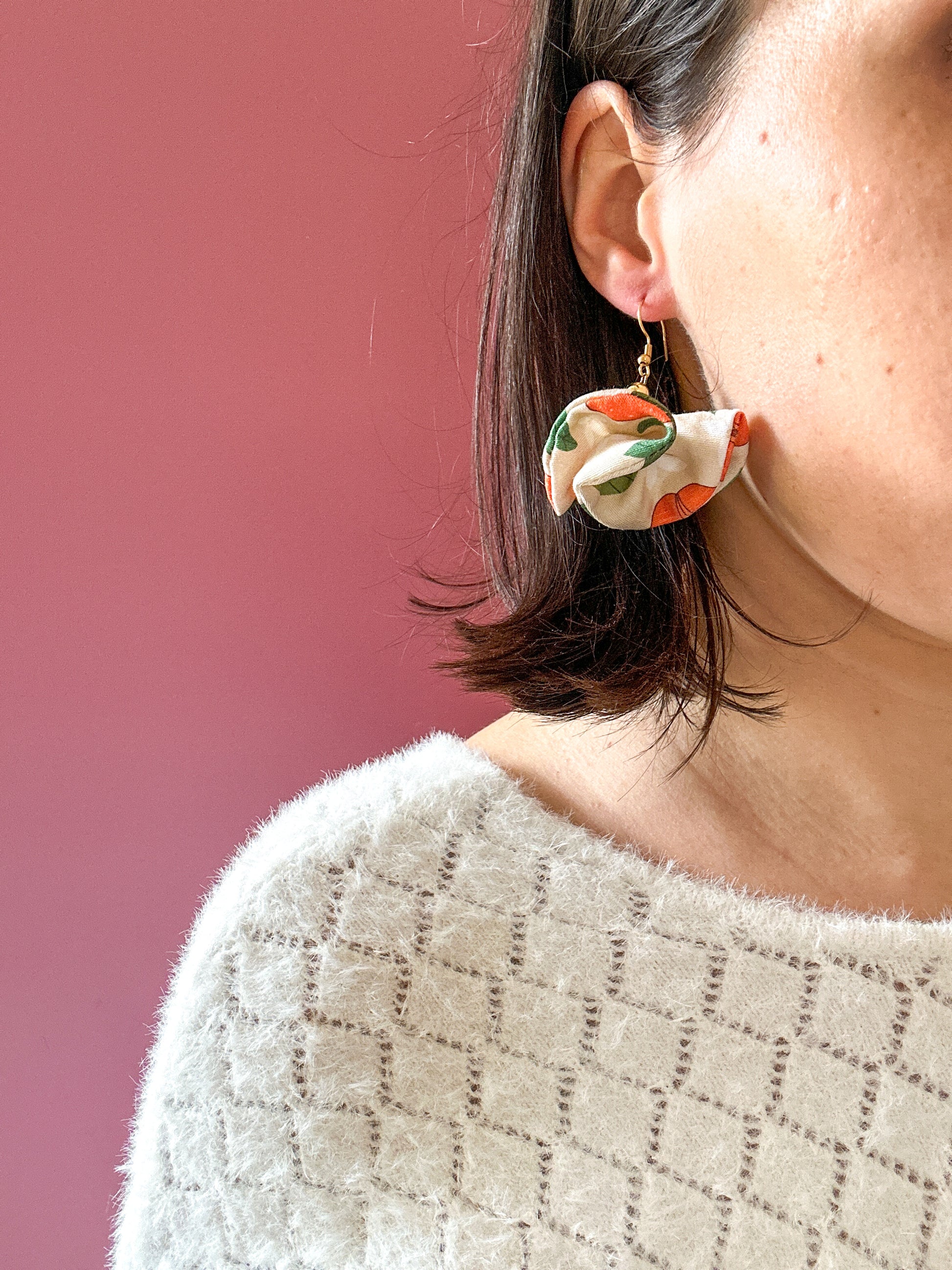Matières : Boucles d'oreilles en tissu et acier inoxydable, très légères et agréables à porter.