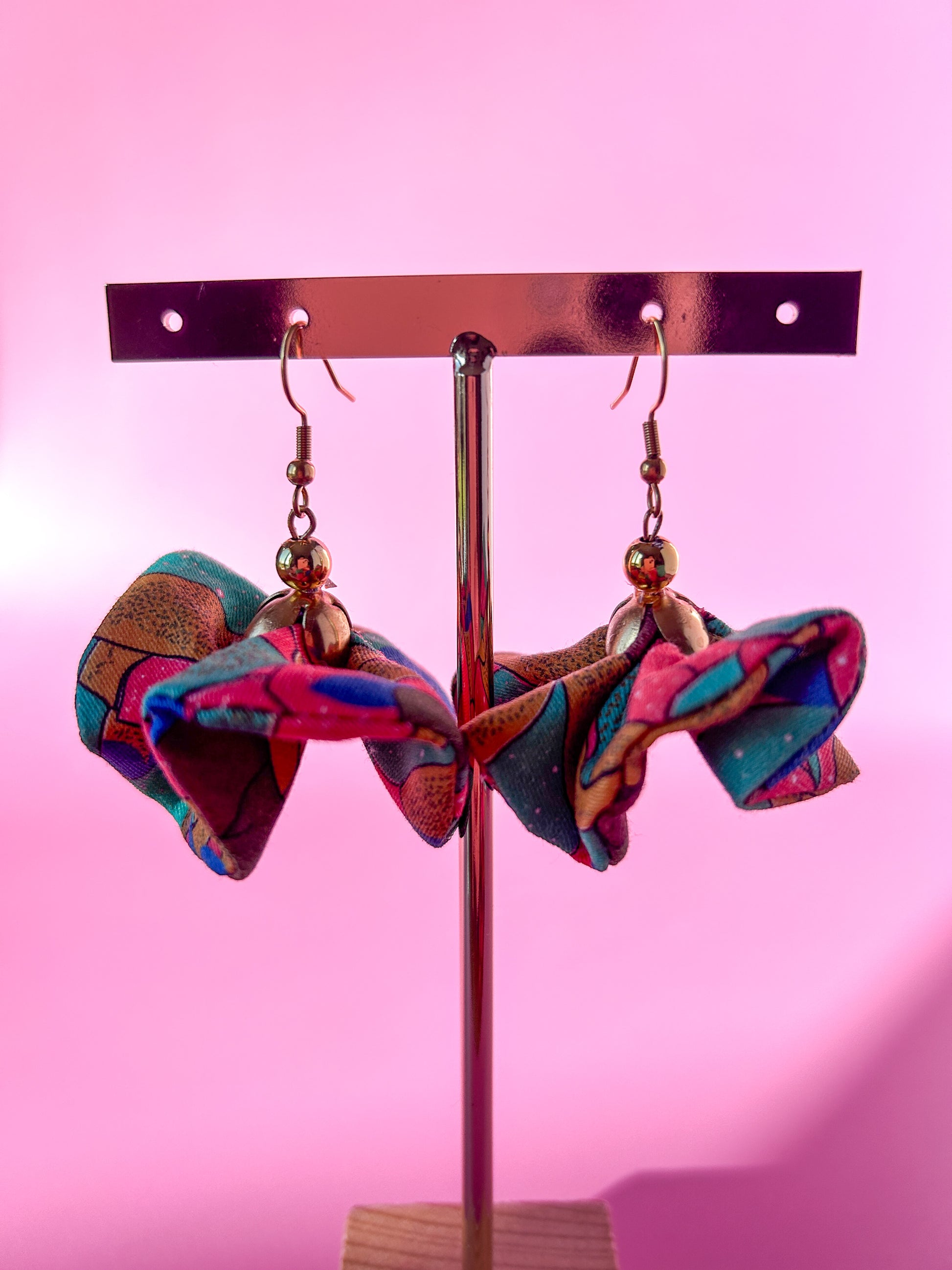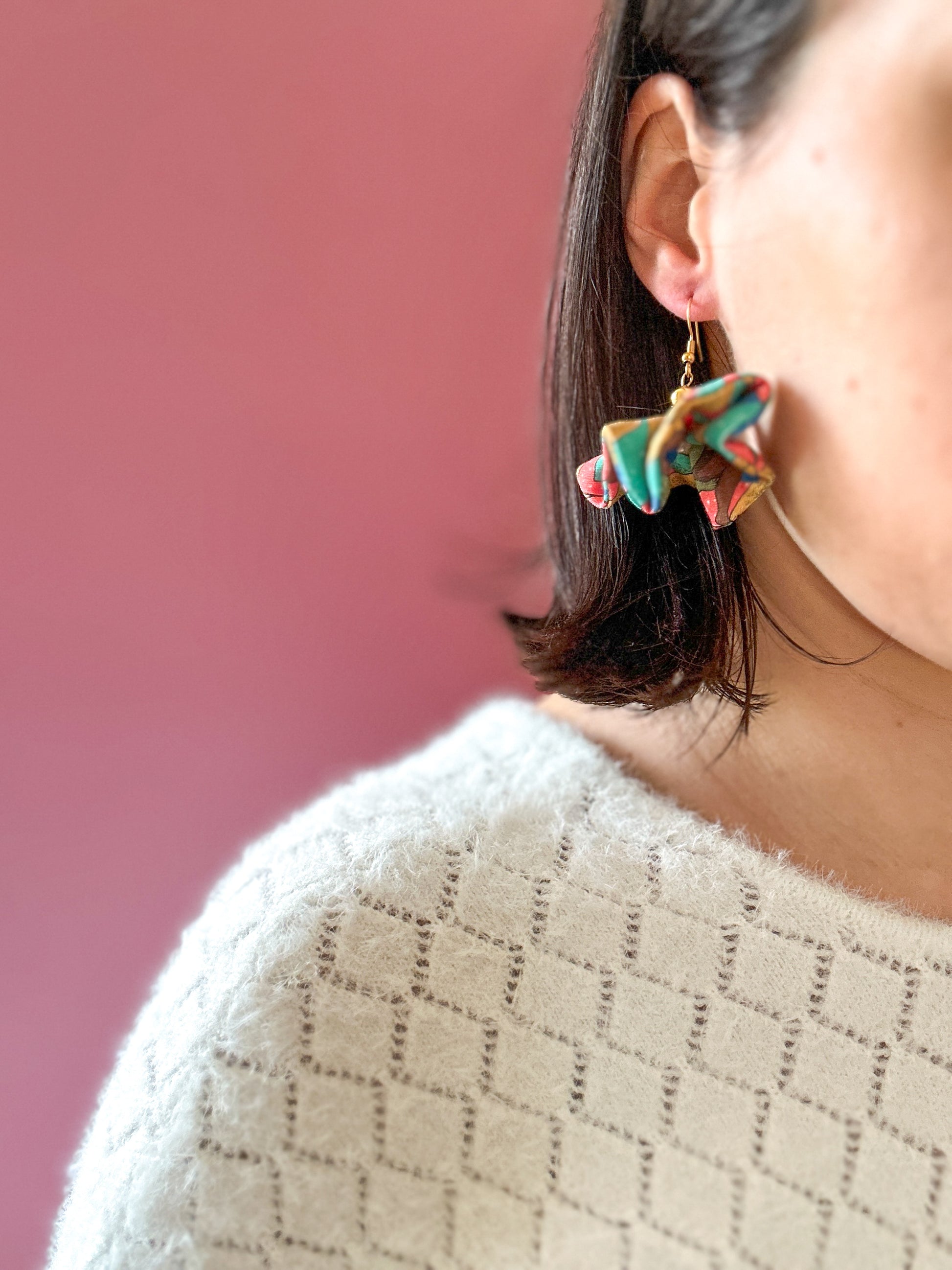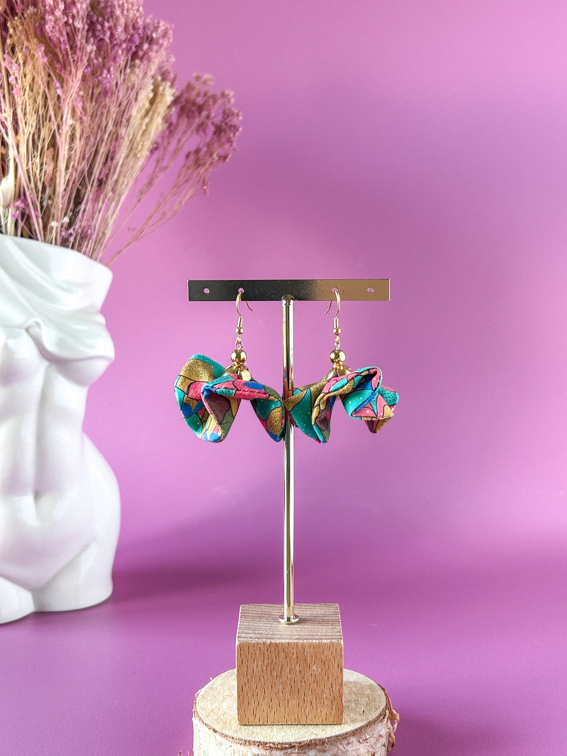 Matières : Boucles d'oreilles en tissu et acier inoxydable, très légères et agréables à porter.