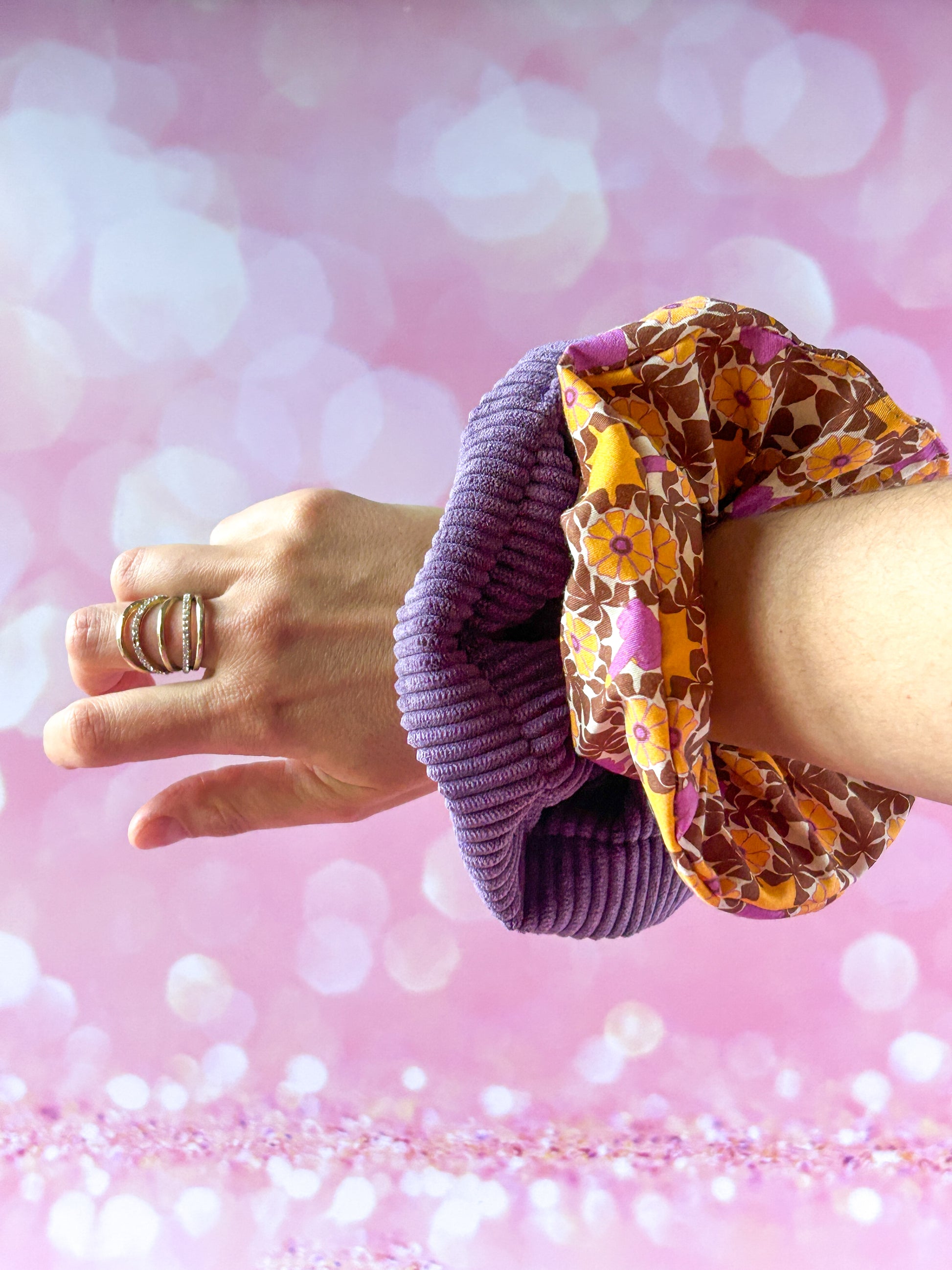 Chouchous : un en velours uni, un en coton imprimé féministe